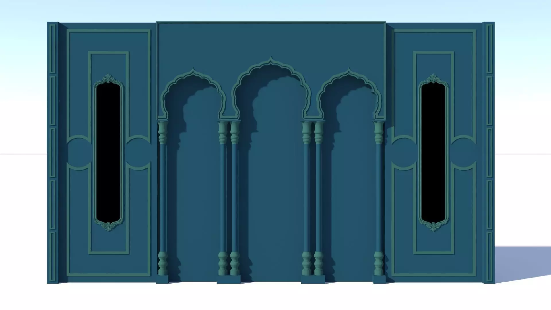 The Heera Mandi Wall Panel 3D Model is inspired by the opulent architectural heritage of historic courtesan havelis, reflecting timeless Mughal and Indo-Islamic aesthetics. The panel features intricate floral and geometric relief work, gracefully carved arches, and ornamental borders that evoke the richness and elegance associated with royal-era interiors. Fine surface detailing, layered depth, and balanced symmetry enhance its visual realism and premium appeal. Designed with high-quality topology and clean geometry, the model is ideal for luxury interior visualizations, heritage-themed décor, wedding stage backdrops, and cinematic environments. Its refined textures and sculpted patterns create a sense of grandeur, making it a striking focal element in both traditional and fusion design concepts.