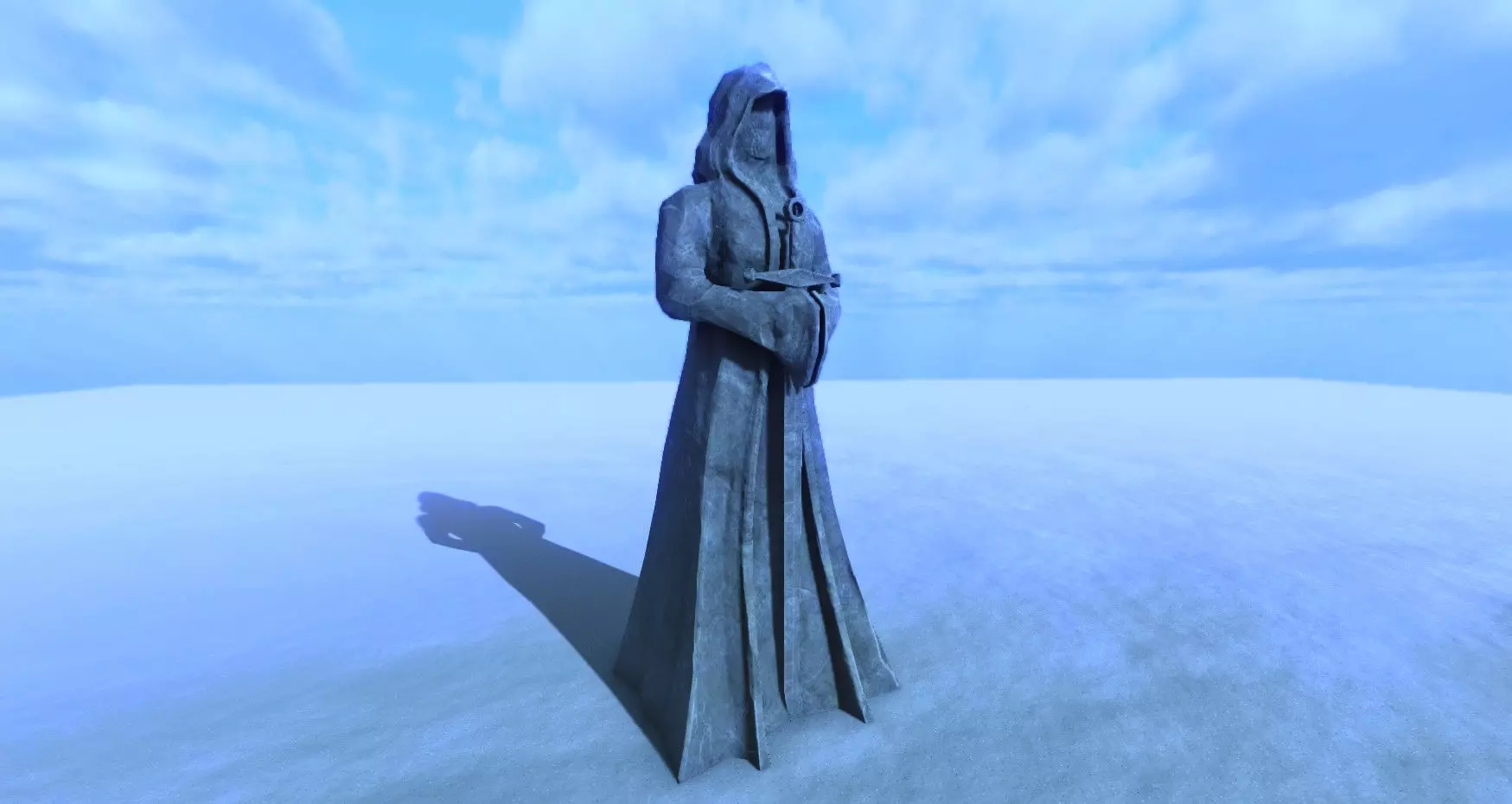 A stone statue of a hooded figure, perfect for a fantasy RPG setting! Low-poly. Texture format is PBR optimised for Unreal Engine and includes the following maps: