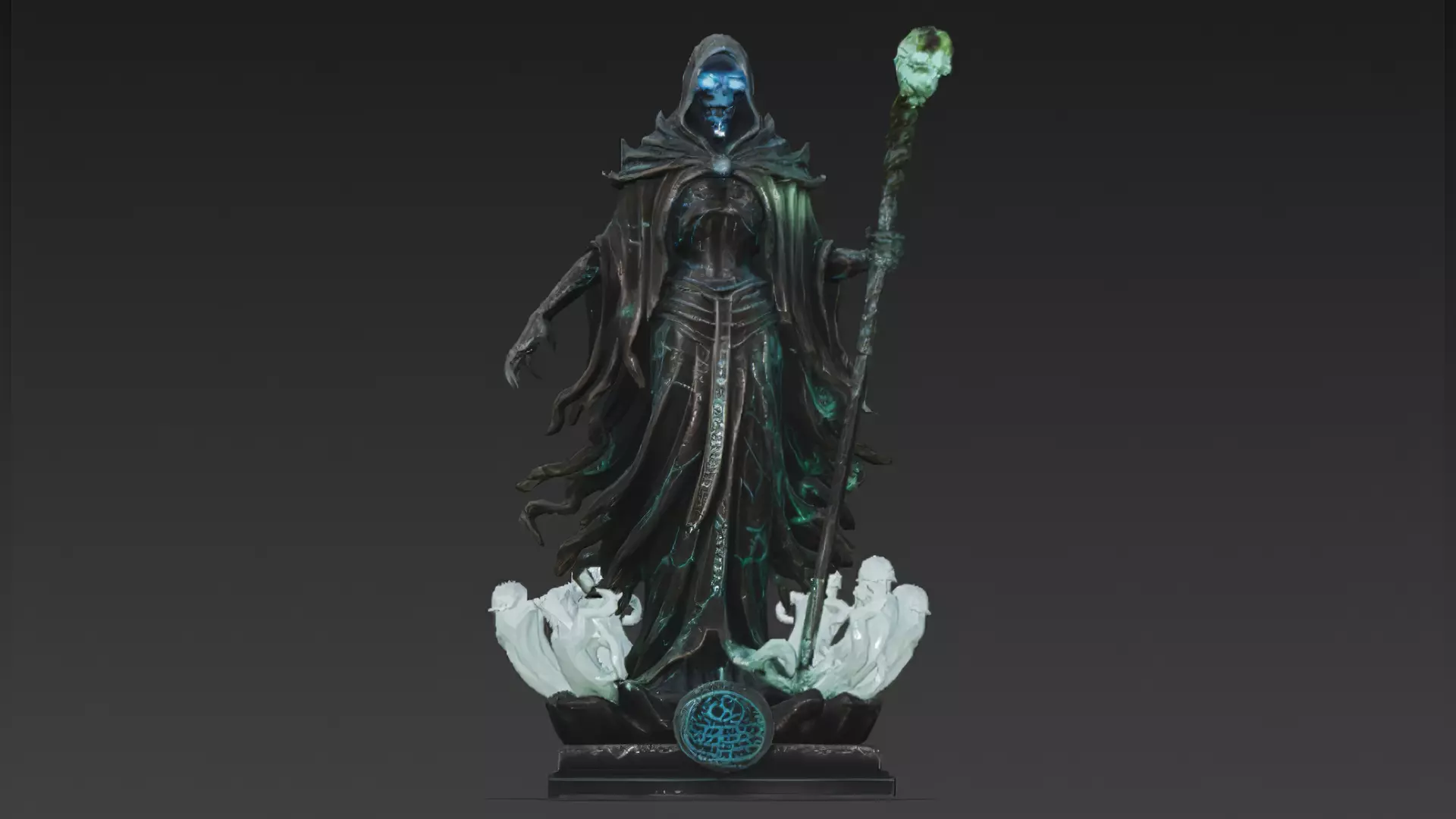 A haunting horror-style statue 3D model of a ghost, designed with eerie details and a gothic dark fantasy atmosphere.