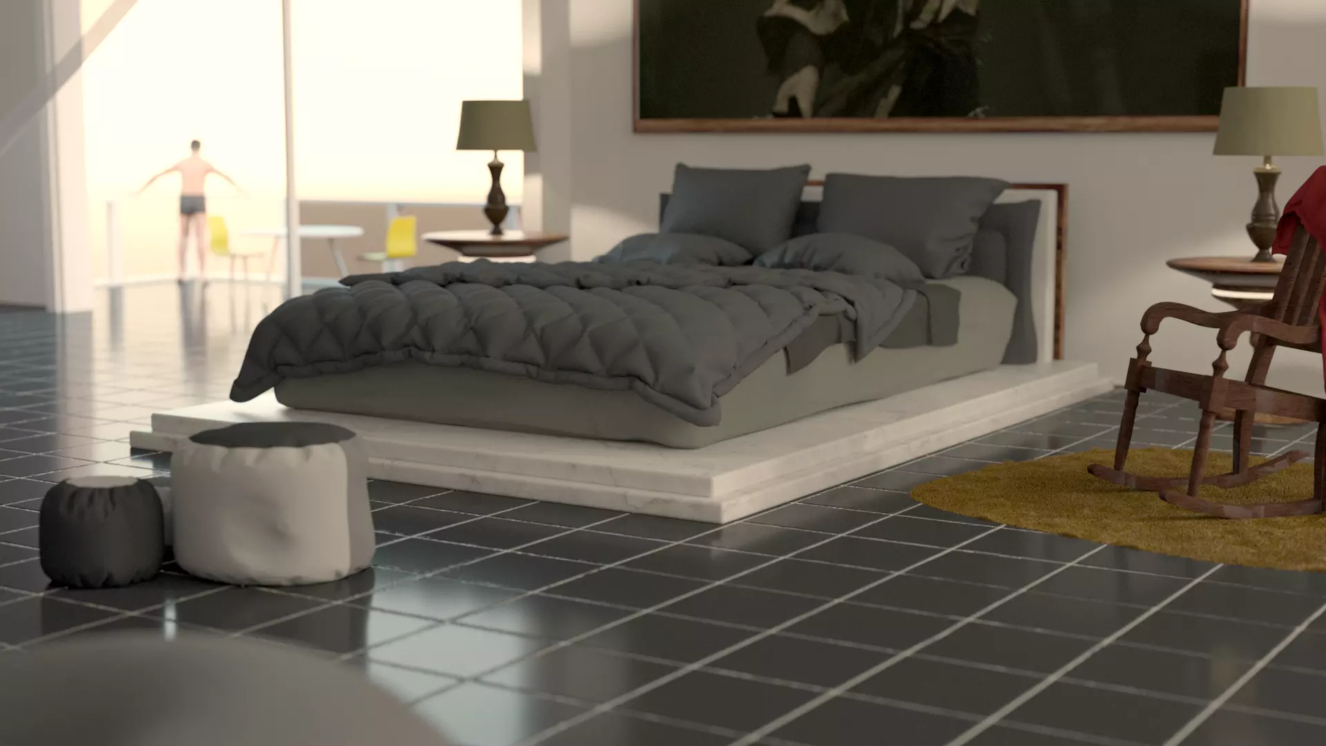 The model has material settings that define how surfaces look (color, shine, transparency, etc.).