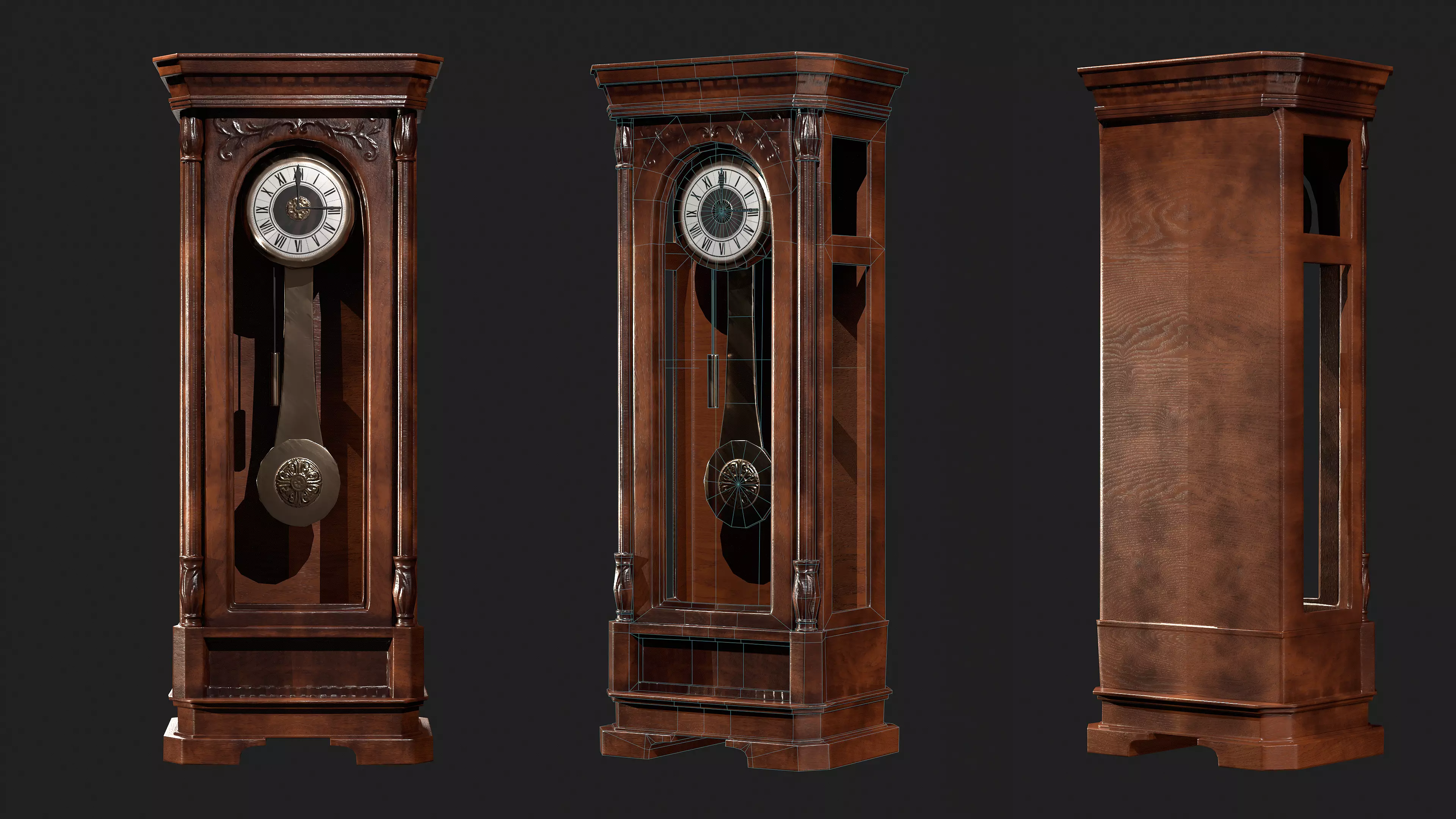Game-ready model of a Howard Miller clockThis file contains albedo, ORM, and normal texturesThe model is ready for export to the engineThe hands and pendulum are movablePolycount: 1200 facesThe Howard Miller clock is renowned for its exquisite craftsmanship and timeless design. Known for their elegance and precision, Howard Miller clocks have been a staple in fine homes for decades. This 3D model captures the intricate details and classic beauty of the original, making it perfect for high-quality game environments and simulations.