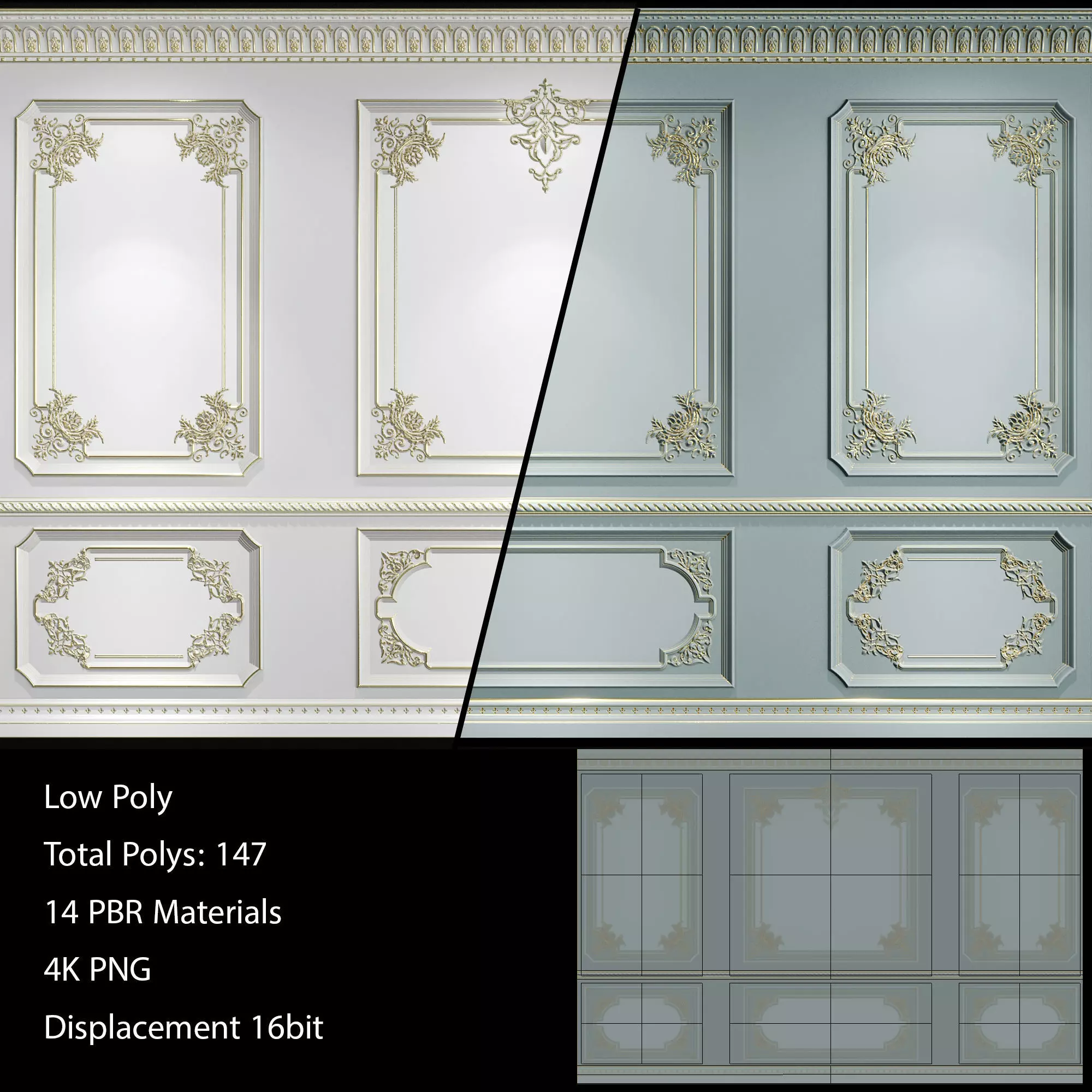 HQ Lowpoly Wall Molding - 2 Sets - 80 4K Maps Low-poly 3D model
