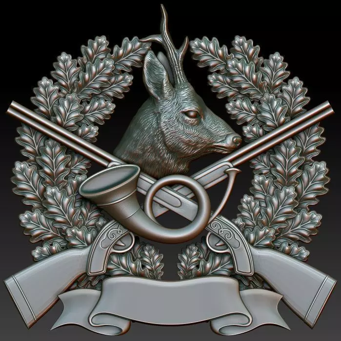 Hunting badge Roe Deer. 3d model of a hunting cap badges for milling on CNC machines. Can be used in the production of souvenirs, furniture, jewelry. Files in stl format, for import to artcam, rhinoceros, 3ds max, etc. You can scale the model to any size you need.