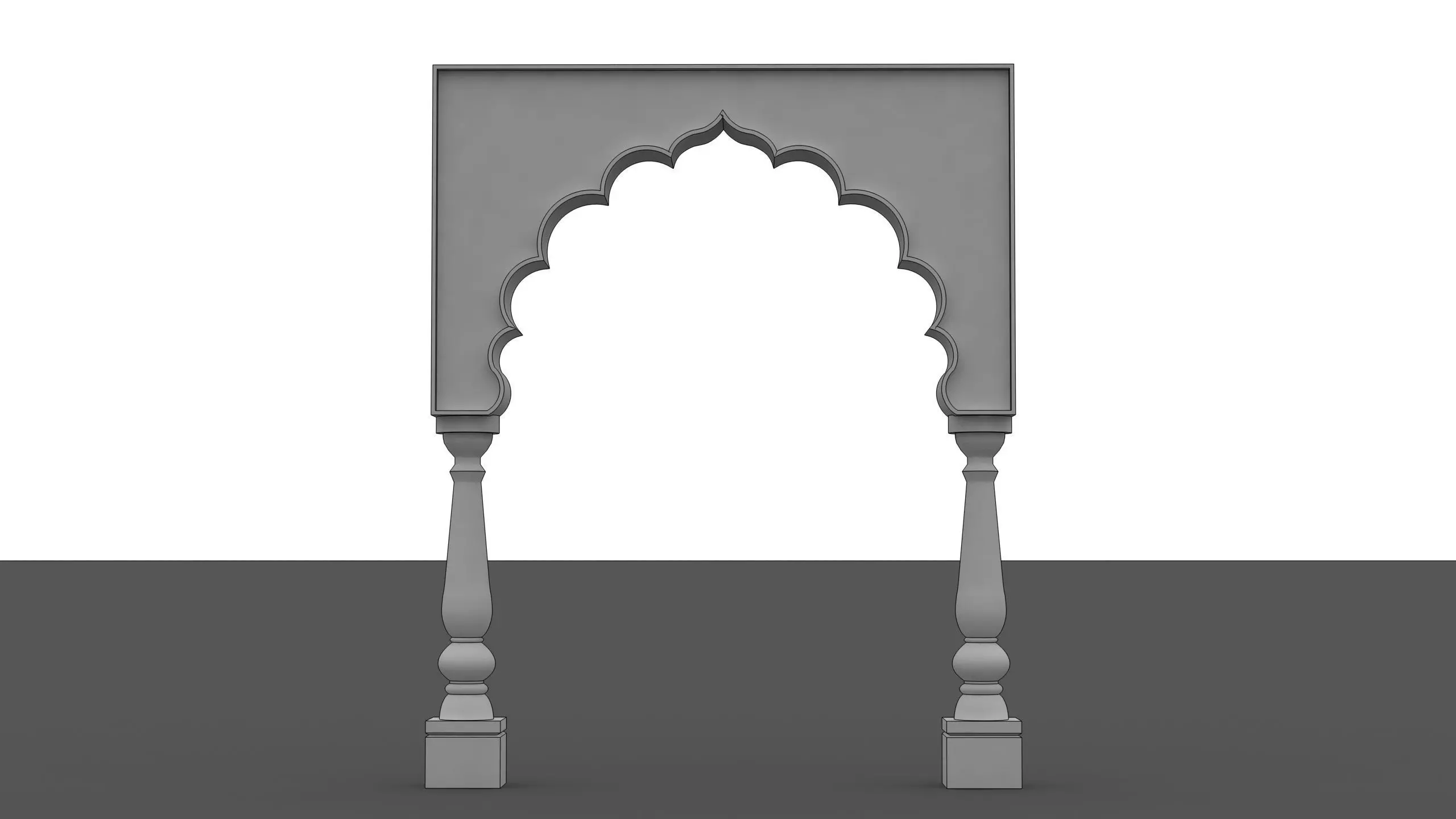An Indian arch is a graceful architectural element deeply rooted in traditional Indian design, reflecting a blend of strength, symmetry, and artistic expression. Commonly seen in palaces, temples, forts, mosques, and heritage gateways, the arch serves both structural and decorative purposes.The form of the arch often varies—from cusped and scalloped profiles to pointed, horseshoe, or semi-circular shapes—creating a visually rich rhythm. Its surface is frequently enhanced with intricate carvings, floral motifs, geometric patterns, and traditional jaali work, showcasing skilled craftsmanship. Moldings, bands, and recessed layers add depth and grandeur to the structure.Materials such as stone, sandstone, marble, or plaster are traditionally used, finished in natural tones or soft pastel colors, sometimes highlighted with gold detailing or painted borders. The arch is usually supported by ornamental columns or piers, often topped with brackets or capitals inspired by regional styles.Overall, an Indian arch symbolizes heritage, elegance, and timeless craftsmanship, making it a prominent focal point in both traditional and contemporary Indian architectural designs.