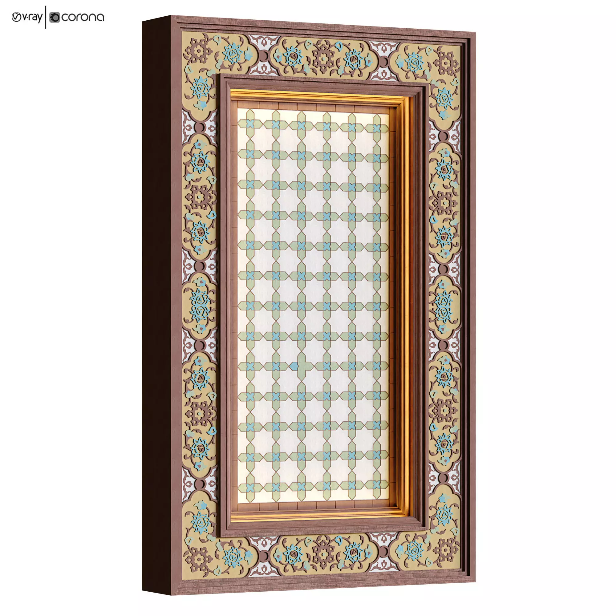 Name: islamic set 584Type: modelMid: {8F131DA9-D050-4C17-92FF-2A2BE3AC9884}Format: 3Ds Max 2019Export: FBX, 3DSRender: VRay (6.x), Corona (11)Poly: 127222Verts: 239548Matclasses: Multimaterial,VRayMtl,_CoronaPhysicalMtlUnits: CentimetersDimension: 56.07 x 10.99 x 91.7