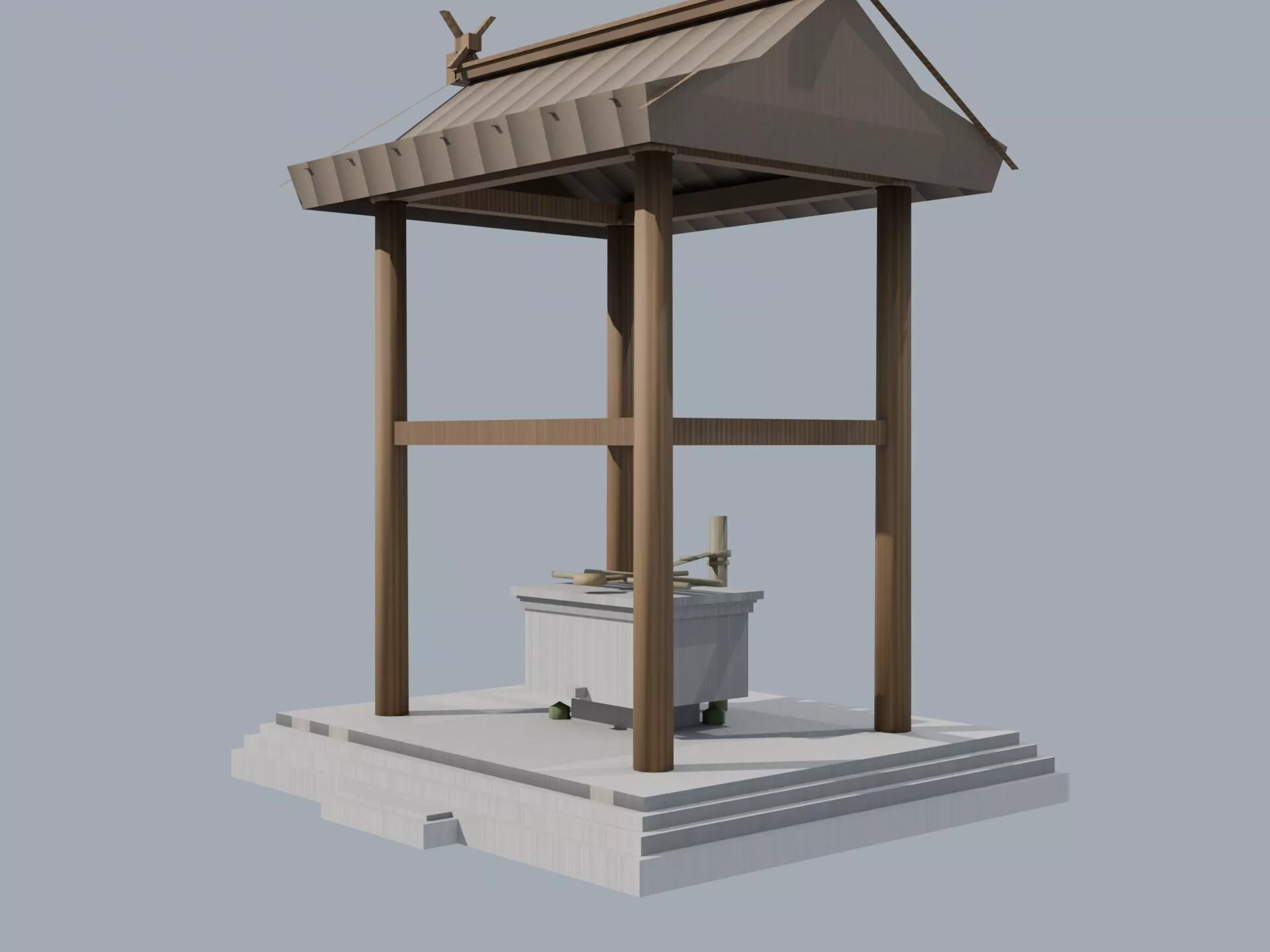 Japanese Temizuya Water Purification Pavilion Low Poly 3D Model Low-poly 3D model