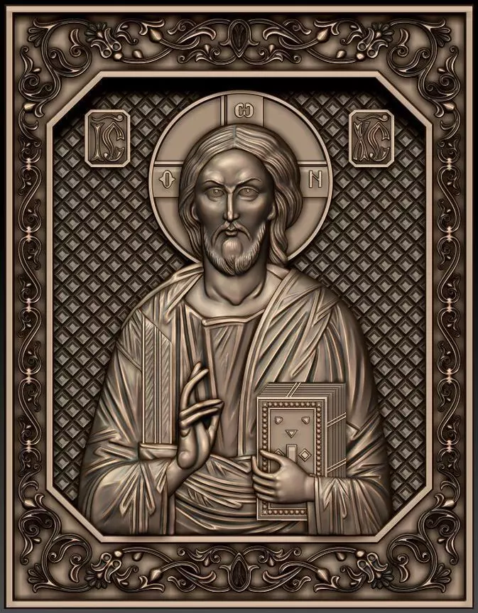 3d model Orthodox Jesus Christ Icon. For milling on CNC machines. Can be used in the production of souvenirs, furniture, jewelry. Files in stl format, for import to artcam, rhinoceros, 3ds max, etc. You can scale the model to any size you need.
