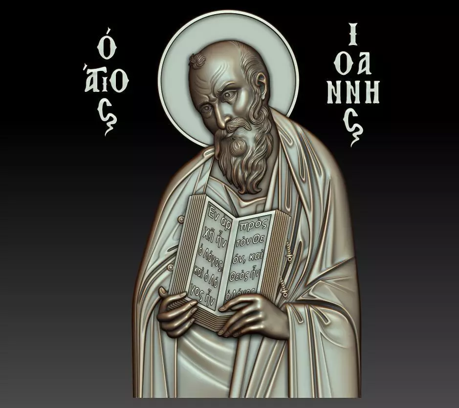 3d model Orthodox icon of John the Evangelist (John the Apostle, Apostle Ioann). For milling on CNC machines. Can be used in the production of souvenirs, furniture, jewelry. Files in stl format, for import to artcam, rhinoceros, 3ds max, etc. You can scale the model to any size you need.
