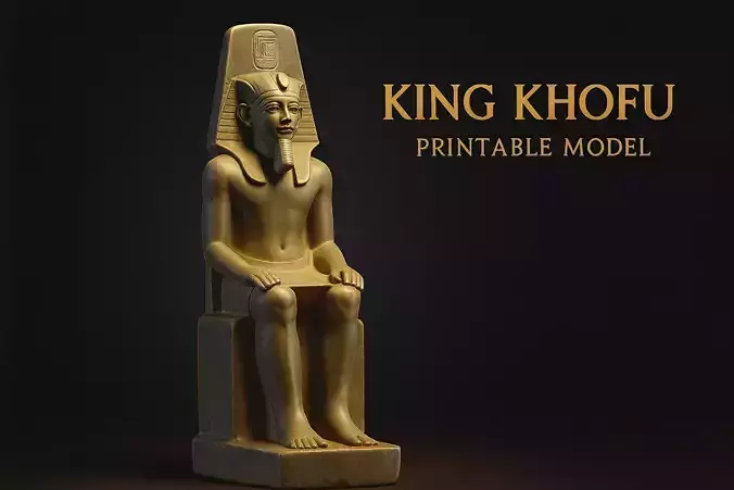 This is a digital 3D model of King Khufu (also called King KofO). He was a famous pharaoh in ancient Egypt. The statue shows him sitting on a throne. It has clean details and is ready for 3D printing. You can use it for history projects, home decoration, or teaching.