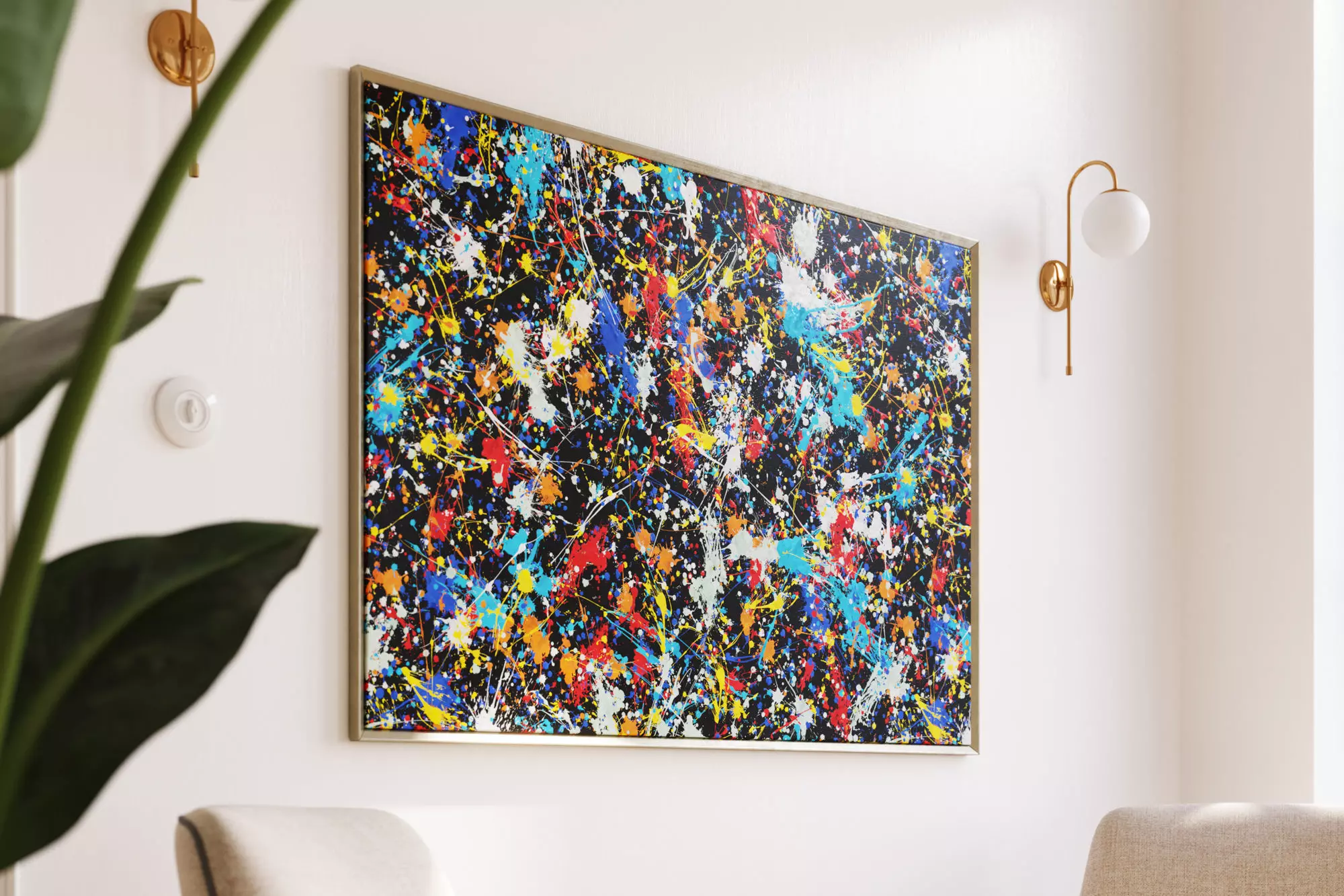 High-quality, photorealistic abstract painting in a frame.Model prepared for architectural visualizations inside various 3d software.