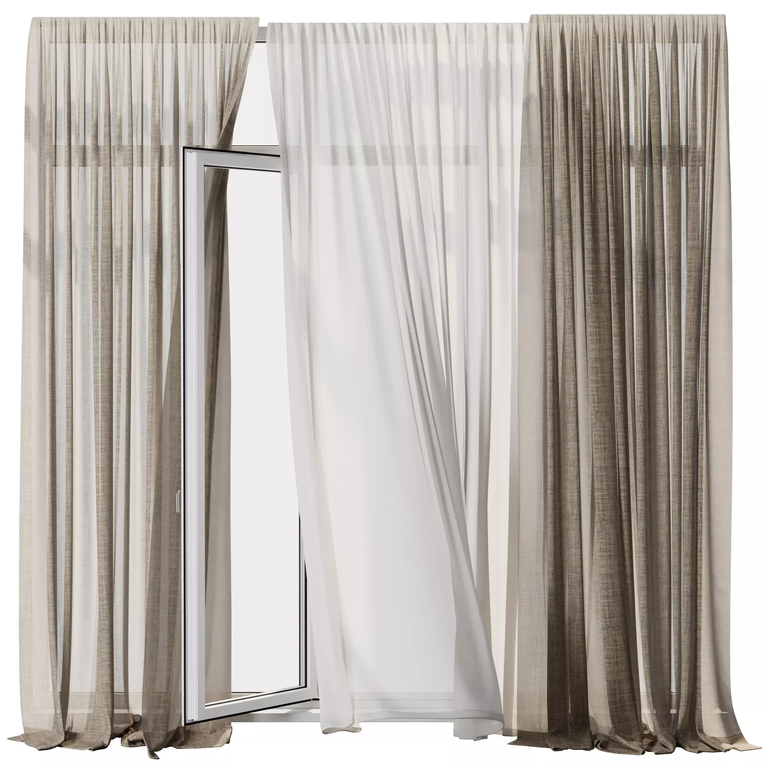 Linen curtains when open window 07 HBH Low-poly 3D model