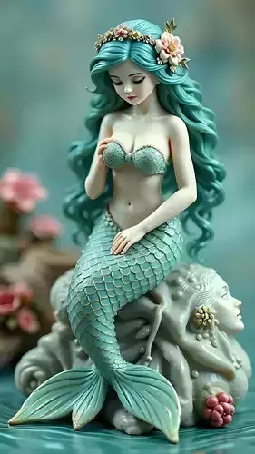 Search terms: luxury mermaid sculpture 3d, turquoise tail model, floral crown ring, high end sculpture render, editorial jewelry 3d, cinematic jewelry, premium 3d asset, fine jewelry design, symbol of allure sculpture, luxury brand content, digital fashion, jewelry product shot, female motif jewelry, elegant sculpture 3d, sculptural mermaid, majestic accessory, powerful jewelry, mythical beast, untamed luxury, regal elegance.