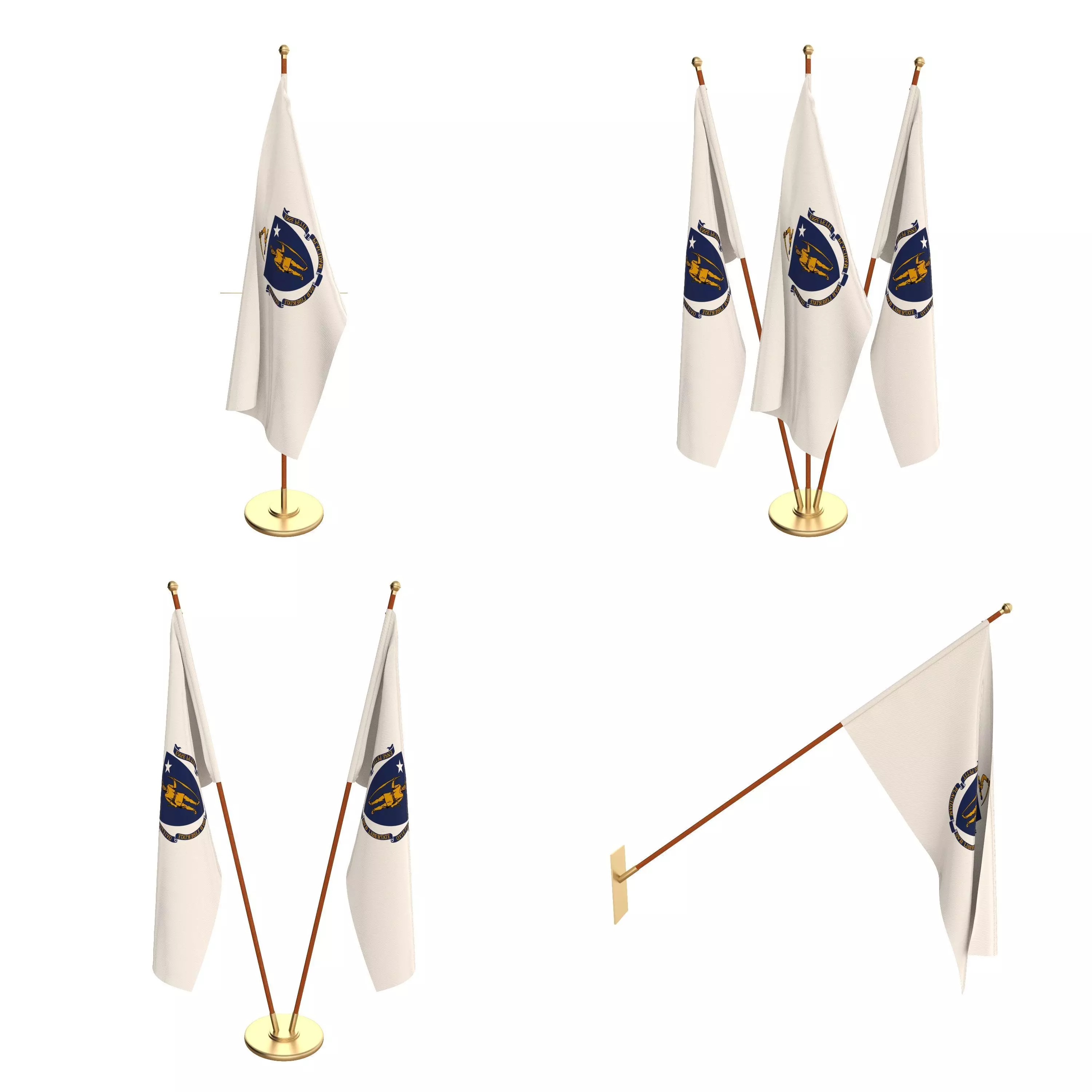 Set of four flag setups(exterior flag and three different office flags).