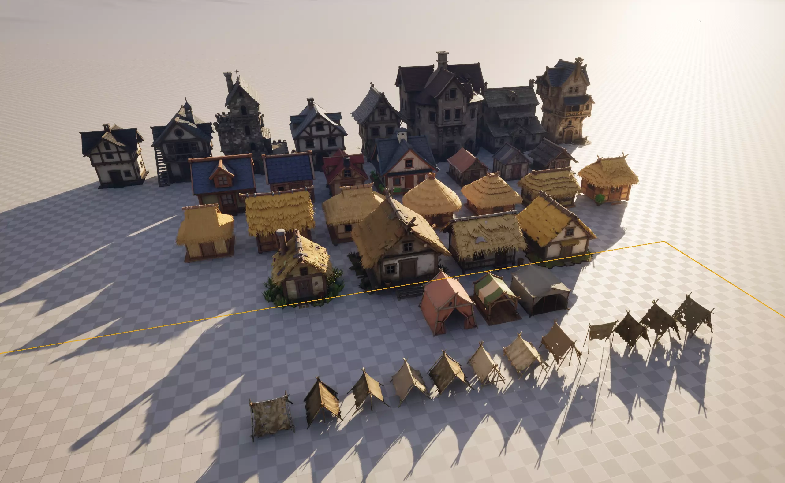 • 16 total variants, plus a full village layout scene.