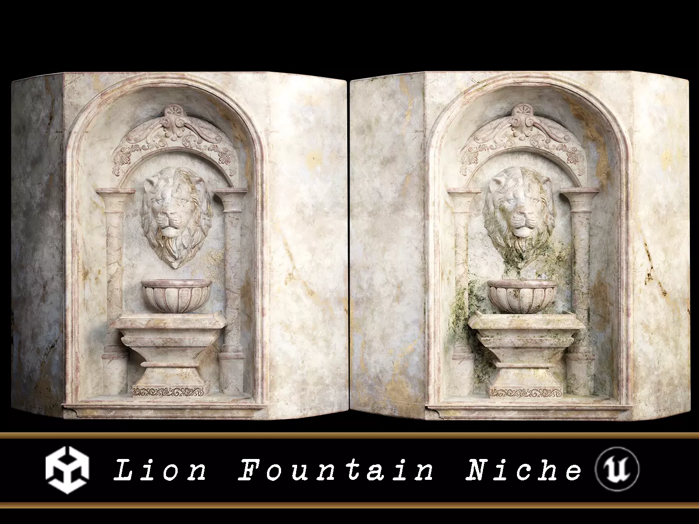 Medieval Lion Fountain Niche 3D Model. This model contains the Medieval Lion Fountain Niche itself