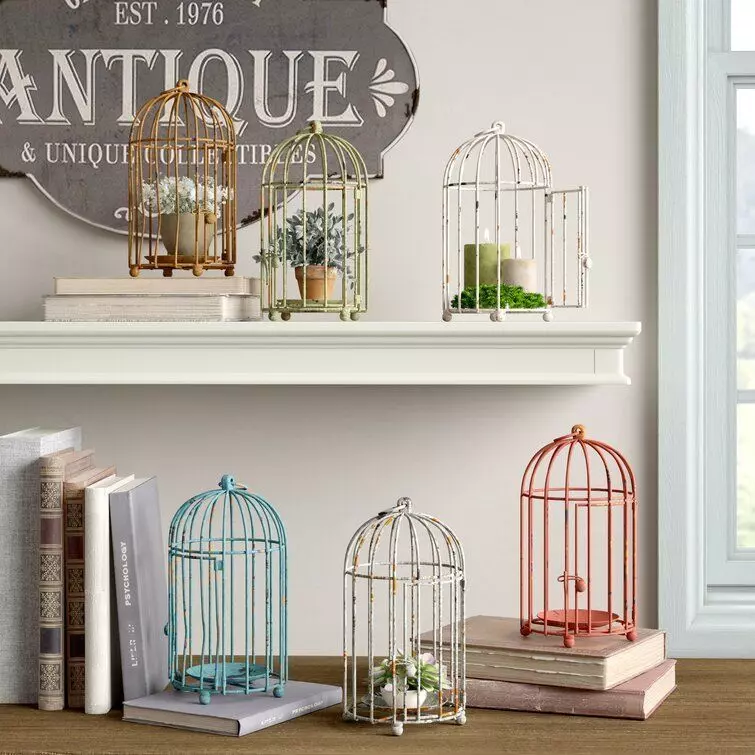 • Show off potted succulents or miniature roses with this handmade birdcage decor, showcasing distressed details for a hint of vintage character.