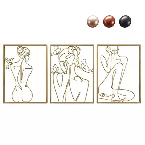 Name: Minimalist_Metal_Line_Art_WomanFormat: 3Ds Max 2017Export: FBX, OBJ, MATRender: VRay (7.x)Polys: 266504Verts: 266532Units: CentimetersDimension: 236.88 x 22.69 x 148.23Modeller: Azadeh Kheirandish