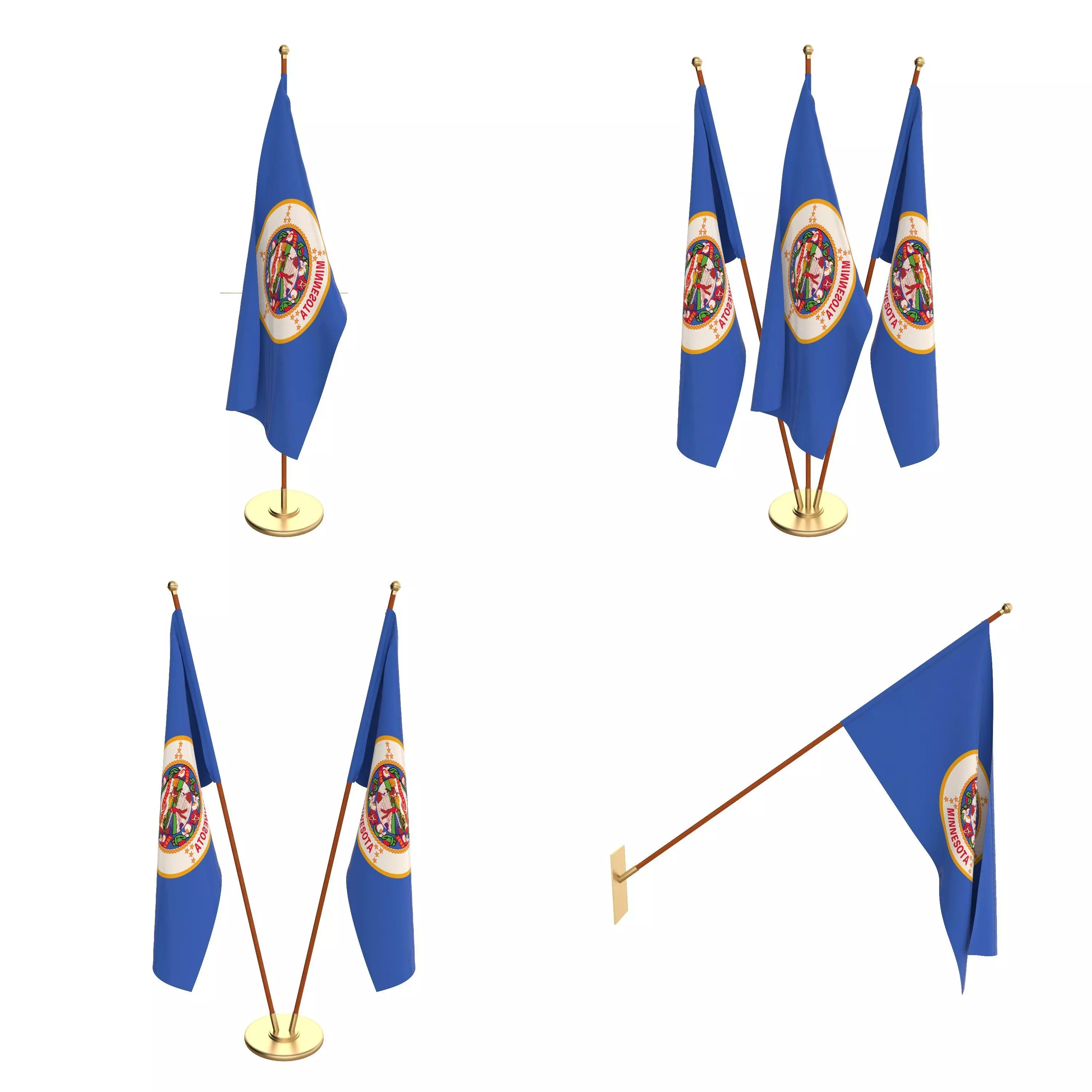 Set of four flag setups(exterior flag and three different office flags).