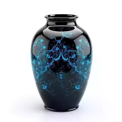This meticulously crafted 3D model presents a sophisticated decorative vase, featuring a glossy black finish adorned with an intricate, vibrant blue floral and ornamental pattern. Its elegant design makes it a versatile asset for a wide range of applications, including enhancing interior design visualizations, serving as a stylistic prop in architectural renderings, or adding a touch of class to virtual reality (VR) and augmented reality (AR) environments. The model is optimized for both static high-quality renders and real-time applications like game development, thanks to its clean topology and efficient polygon distribution. It is fully UV unwrapped with appropriately scaled PBR textures, ensuring realistic material representation and seamless integration into any scene. This asset is provided in multiple industry-standard formats, including GLB, OBJ, STL, ABC, DAE, FBX, USD, and PLY, offering maximum compatibility. Whether you are creating immersive digital art, populating a detailed interior scene, or seeking a ready-to-use centerpiece for your next project, this black and blue ornamental vase is designed to meet professional standards with ease. Its smooth surfaces and detailed patterns are perfect for close-up shots and high-resolution presentations.