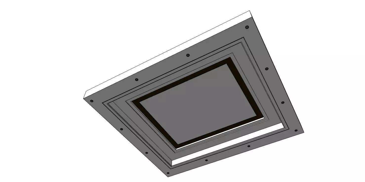 This 3D model features a contemporary, multi-layered ceiling panel design, perfect for modern interior spaces. It showcases a sleek and clean geometric design with a square frame and evenly spaced details, designed for minimalistic yet elegant aesthetics. The structure includes flush mounting with visible fasteners around the edges, making it ideal for use in commercial or residential projects, particularly for high-end interior design. The panel can be used in office spaces, living rooms, and other contemporary environments. This model can be used for visualizations, architectural renders, and more.