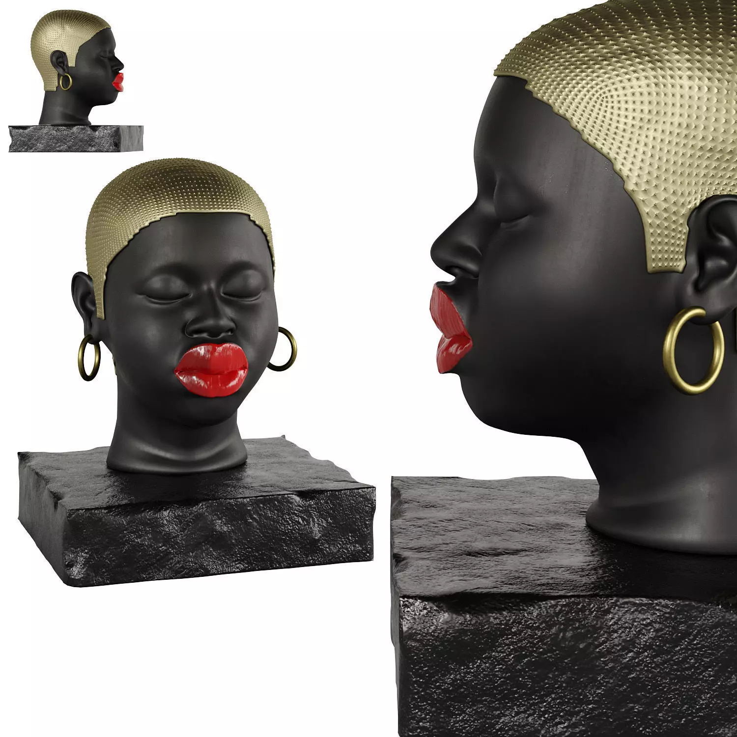 Modern Figure Head Female Black Red Lip 3D model