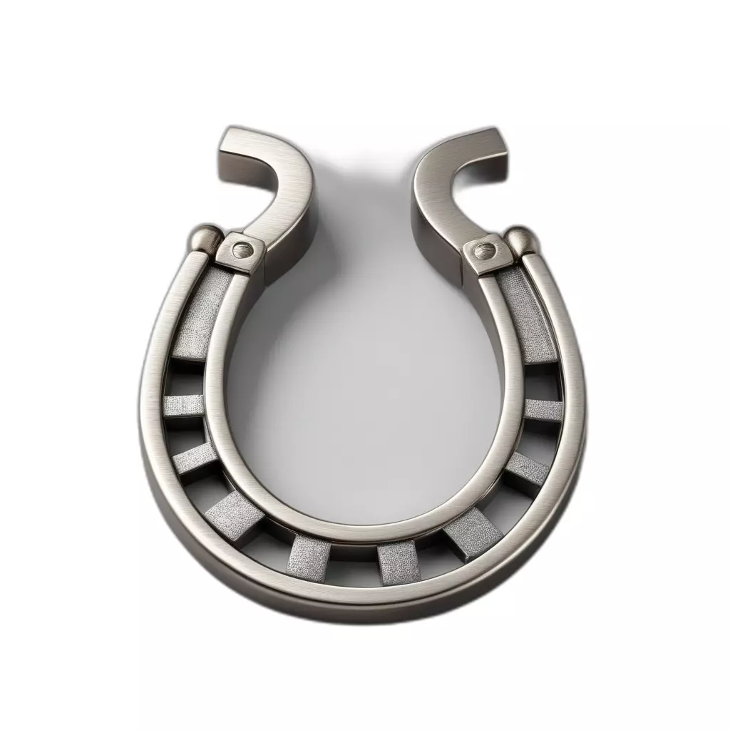 This professional 3D model presents a highly detailed and modern stylized horseshoe, rendered in sleek metallic finishes. The design features a brushed metal exterior complemented by an intricately textured inner surface, connected by realistic hinge details at the top, giving it a sophisticated and almost mechanical aesthetic. This versatile asset can serve numerous applications, from acting as a prominent emblem or logo in virtual environments to functioning as a decorative prop in game development. Its clean, optimized topology ensures smooth performance in real-time applications such as augmented reality (AR) and virtual reality (VR) experiences, making it ideal for interactive scenes and digital art projects. Furthermore, its robust design is well-suited for high-quality static renderings in architectural visualization, showcasing a contemporary touch. The model comes fully UV unwrapped with PBR textures, providing realistic material properties and excellent visual fidelity. It is ready for subdivision workflows if even higher detail is required for close-up shots or high-end presentations. This asset is provided in multiple industry-standard file formats, including GLB, OBJ, STL, ABC, DAE, FBX, USD, and PLY, ensuring broad compatibility across various 3D software and engines. Whether you need a lucky charm, a unique design element, or a sophisticated collectible, this model is designed to enhance your digital projects with its exceptional quality and refined aesthetics.