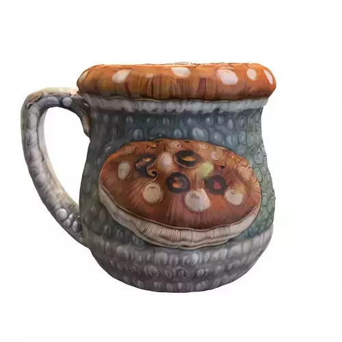 This whimsical 3D model depicts a fantasy-themed mushroom mug, ideal for magical or alchemy-based settings. With intricate textures, stylized design, and mushroom motifs, it's perfect for use as a potion cup, collectible item, or decorative asset in games like Skyrim mods, Minecraft Java (with custom assets), Roblox, The Sims 4 (CC), and Unity or Unreal fantasy RPGs. Also suitable for 3D printing as a display item, fantasy mug replica, or tabletop accessory.