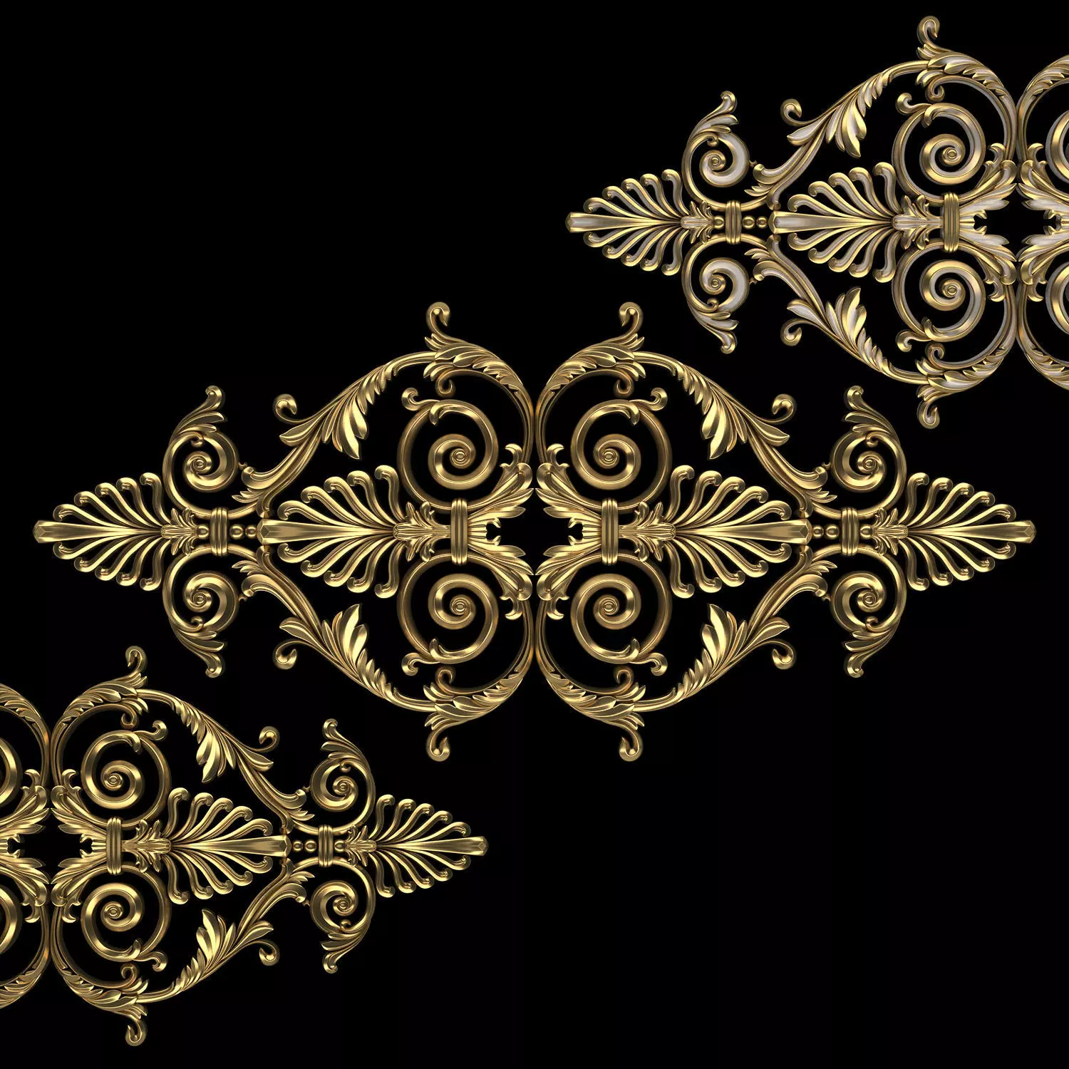 - *Ornament modeling is done with 3D Max software- -Material processing is done with two rendering engines : Corona and vray- *Is the 2016 project file version- *Files in the project: 3dsmax + Corona-3dsmax + Vray +Obj + Mtl- Name: Ornament 91- Version: 2016- Units: Centimeters- Dimension:149*69*5CM- Reset XForm: Yes- Formats: 3Ds Max 2016 - Vray + Corona- Poly: 360/960- Vertex: 375/264- - 3 Mtl : Gold + Gypsum + Blend