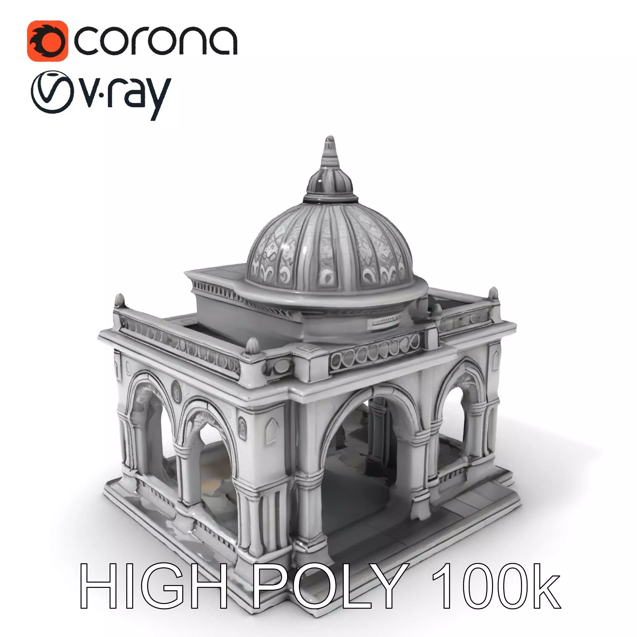 This ornate pavilion model pack offers 3 levels of detail: low-poly, middle-poly, and high-poly, suitable for mobile, environment, and production rendering, respectively. The pack is compatible with game engines like Unity and Unreal, and is ideal for architecture visualizations, games, and interactive presentations. Textures include PBR, Diffuse, NormalMap, and reflection/roughness/metallic, all at 4096x4096 resolution. Models are accurately unwrapped with no overlapping UVs, ensuring high-quality renders. The first image is the reference used for creating the 3D model. It is important to carefully evaluate the quality of the model by examining the preview images that display the topology and polygonal mesh. These previews (WIRE and WEB 3D Preview) clearly demonstrate how accurately the model matches the original reference and how well the geometry has been executed. If you liked this model, please leave a comment and a like.