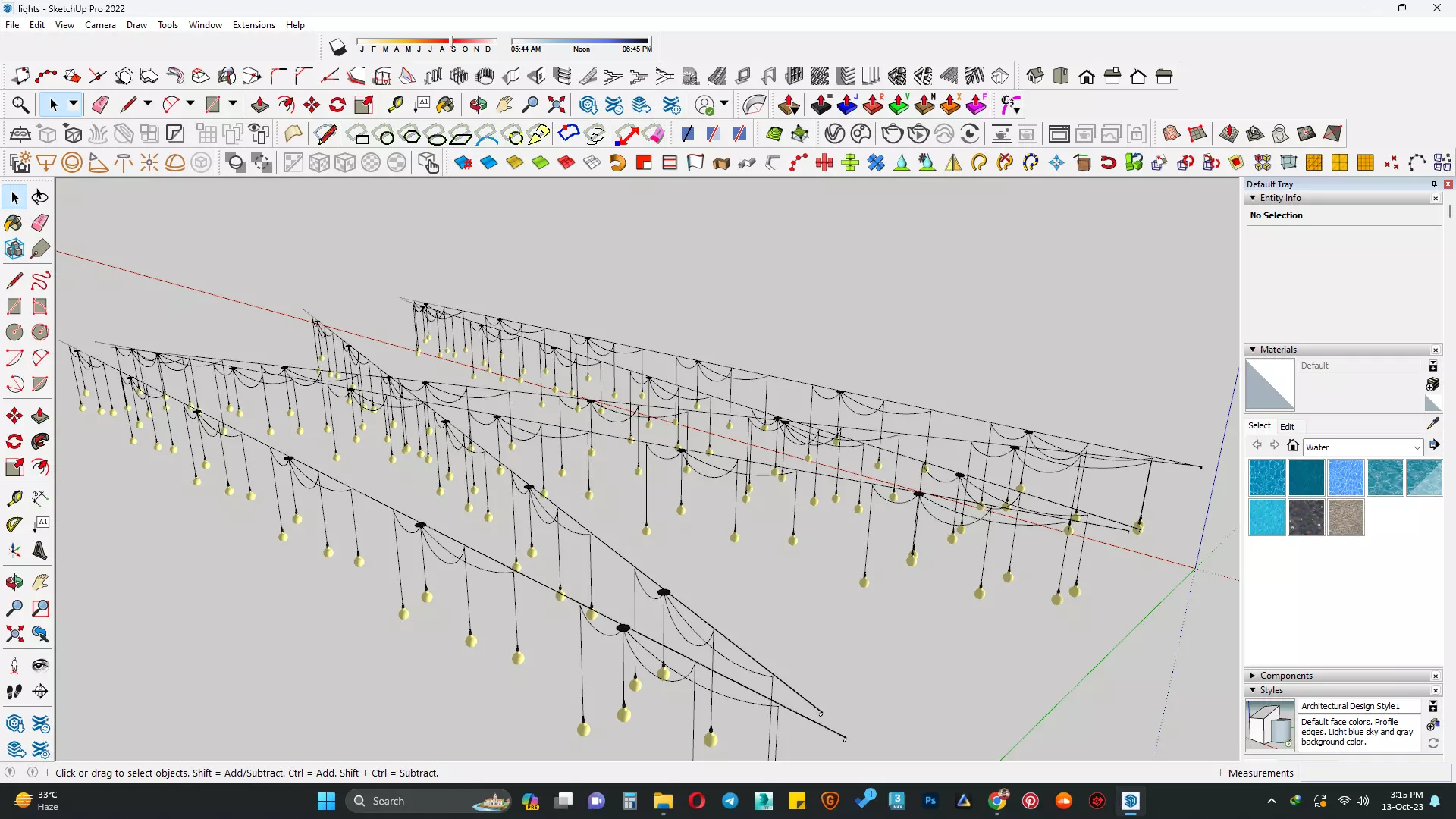 The model has material settings that define how surfaces look (color, shine, transparency, etc.).