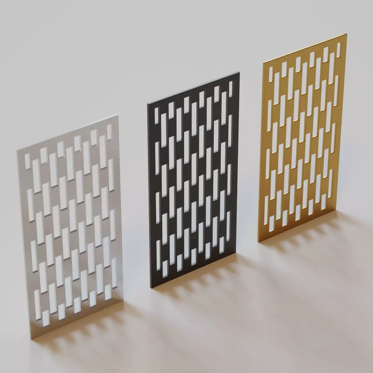 The rar file of the model includes 3 decorative partitions with a geometric pattern(one single design) with different materials.