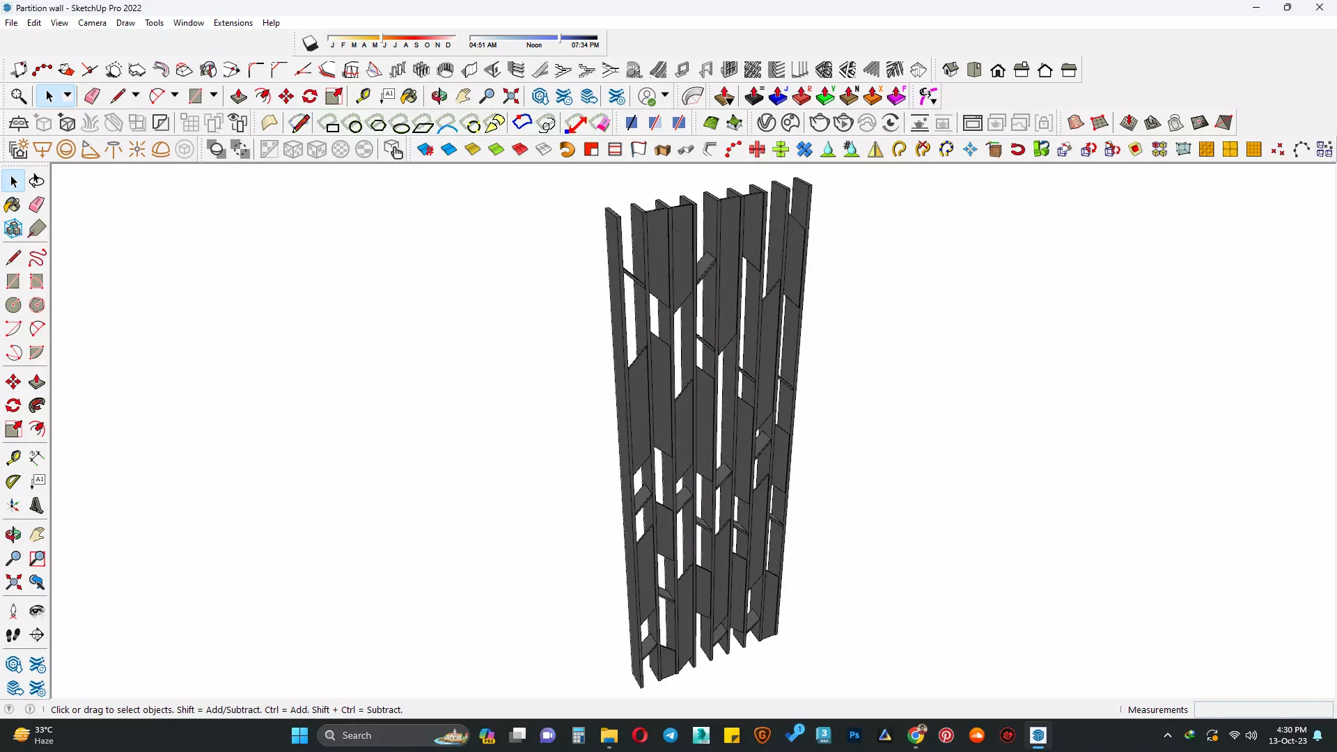 The model has material settings that define how surfaces look (color, shine, transparency, etc.).