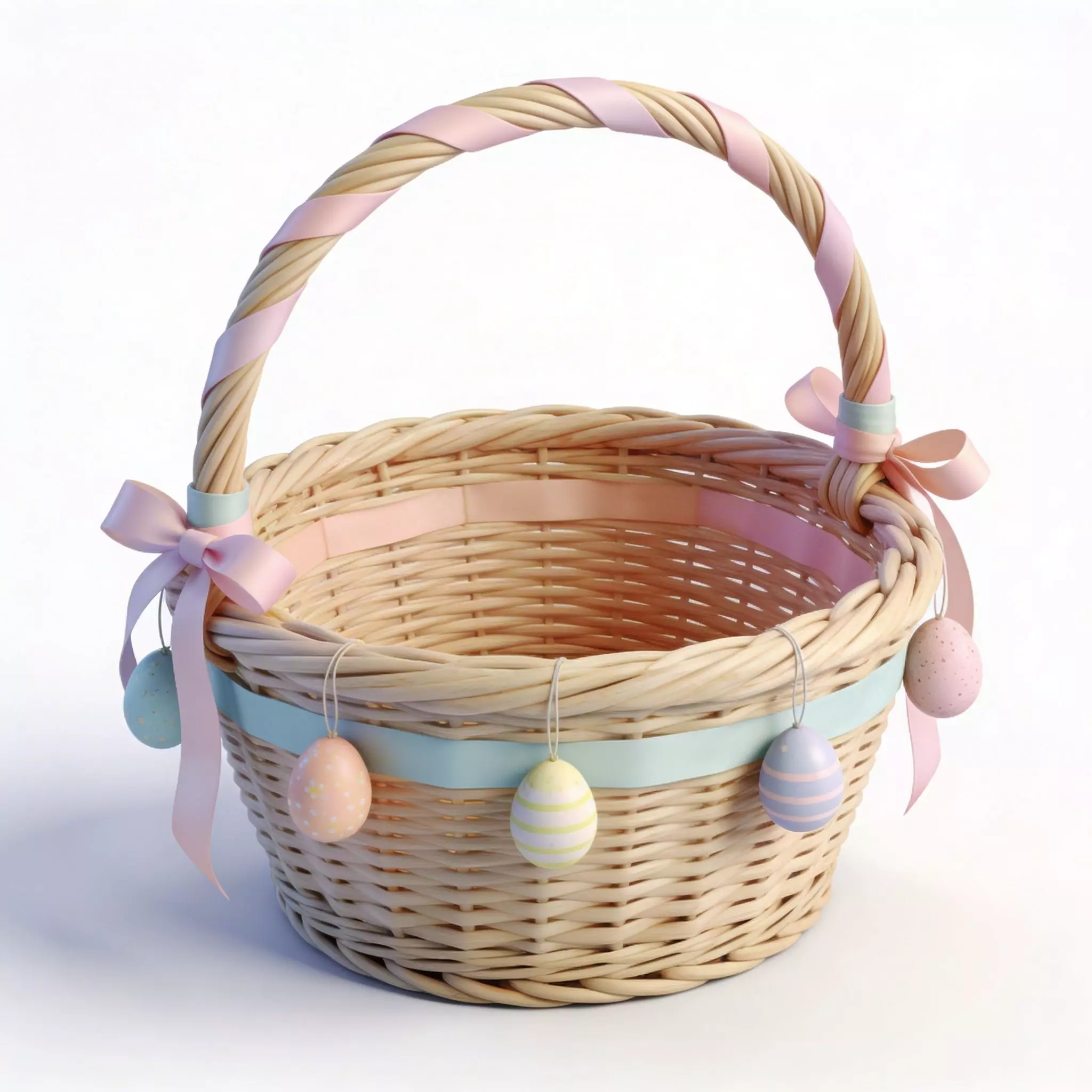 TagsEasterBasket3DModelWovenWillowPastelRibbonHolidaySpringPBRGameReadyUnityUnrealLowPoly4KDecorHouseholdGiftCGIPropFloral