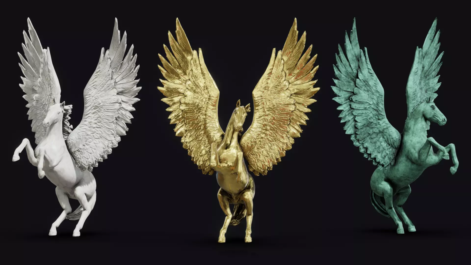 Each statue has it's own material. Material variants, gold, bronze and marble.