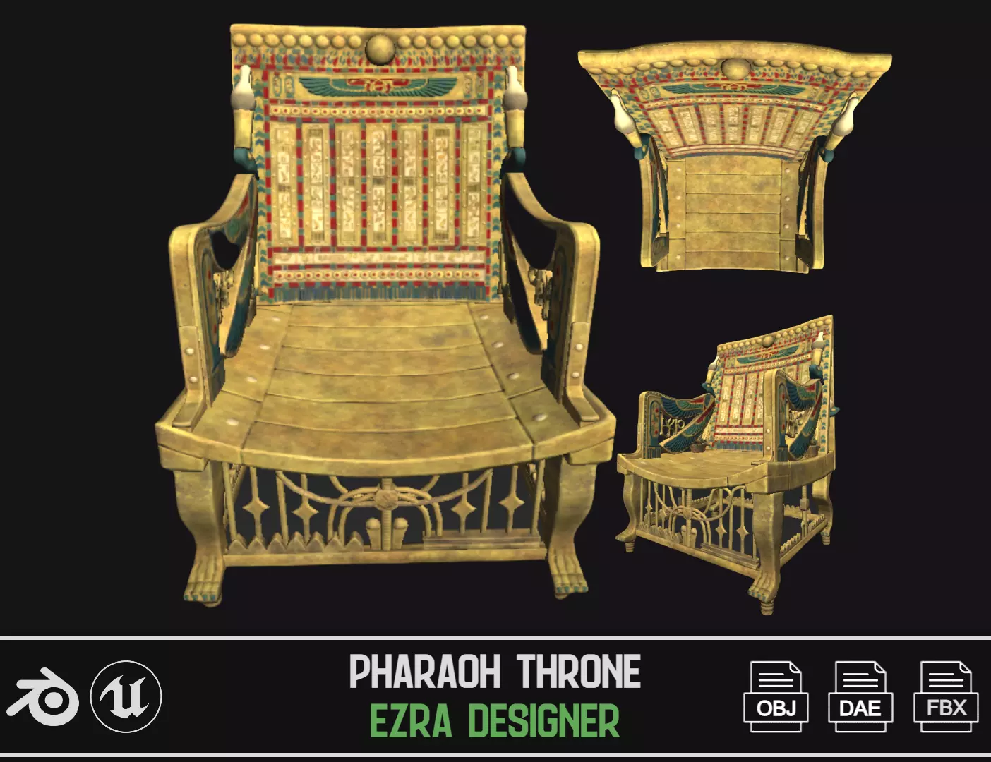 Erleben Sie die Pracht des antiken Ägyptens mit unserem akribisch gefertigten 3D-Modell eines Pharaonenthrones. Dieses Modell strahlt den Reichtum und die königliche Pracht des ägyptischen Königtums aus und ist eine faszinierende Ergänzung für Ihre digitalen Projekte. Egal, ob Sie Geschichtsbegeistert sind, ein Architekt sind oder einfach die Schönheit antiker Designs schätzen, dieser Pharaonenthron ist eine beeindruckende Wahl.