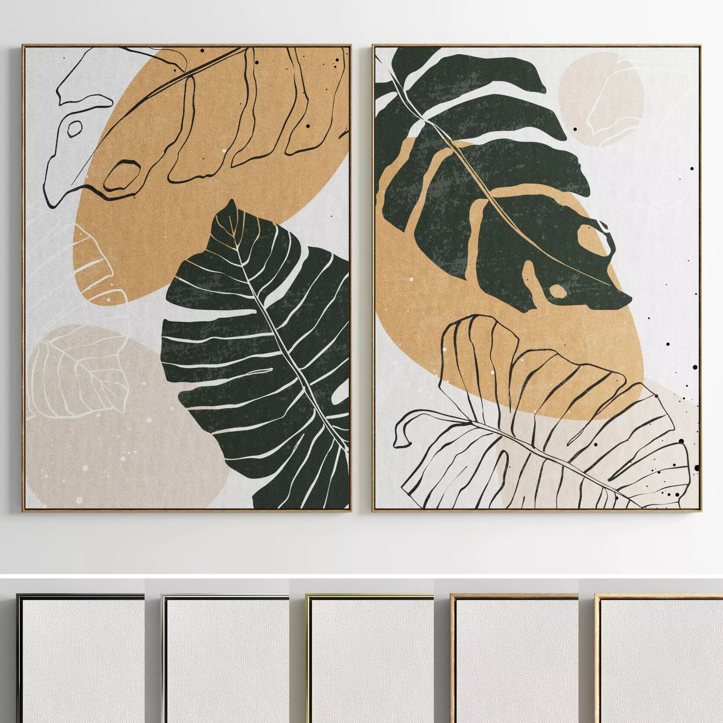 Set of paintings in frames for interior
