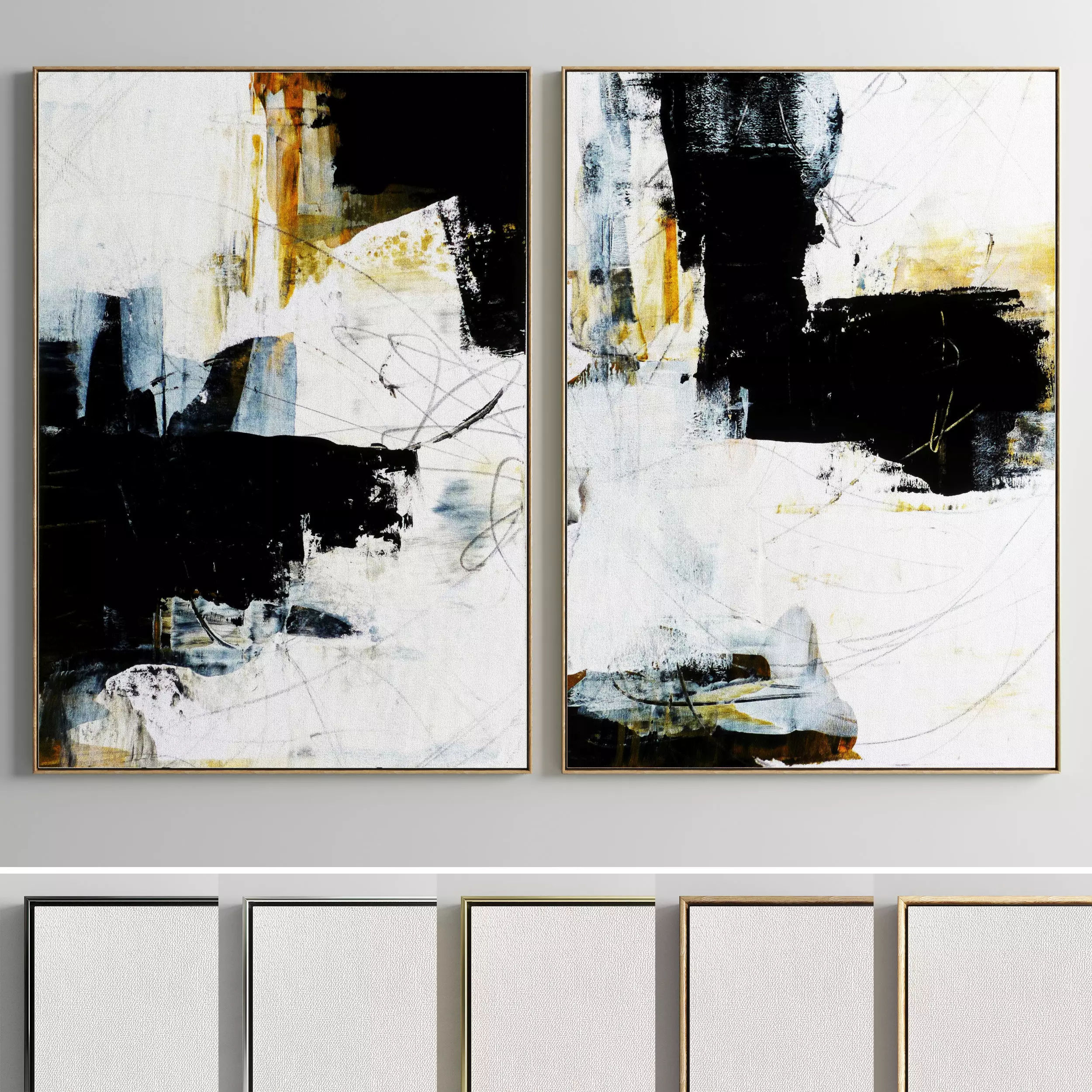 Set of paintings in frames for interior