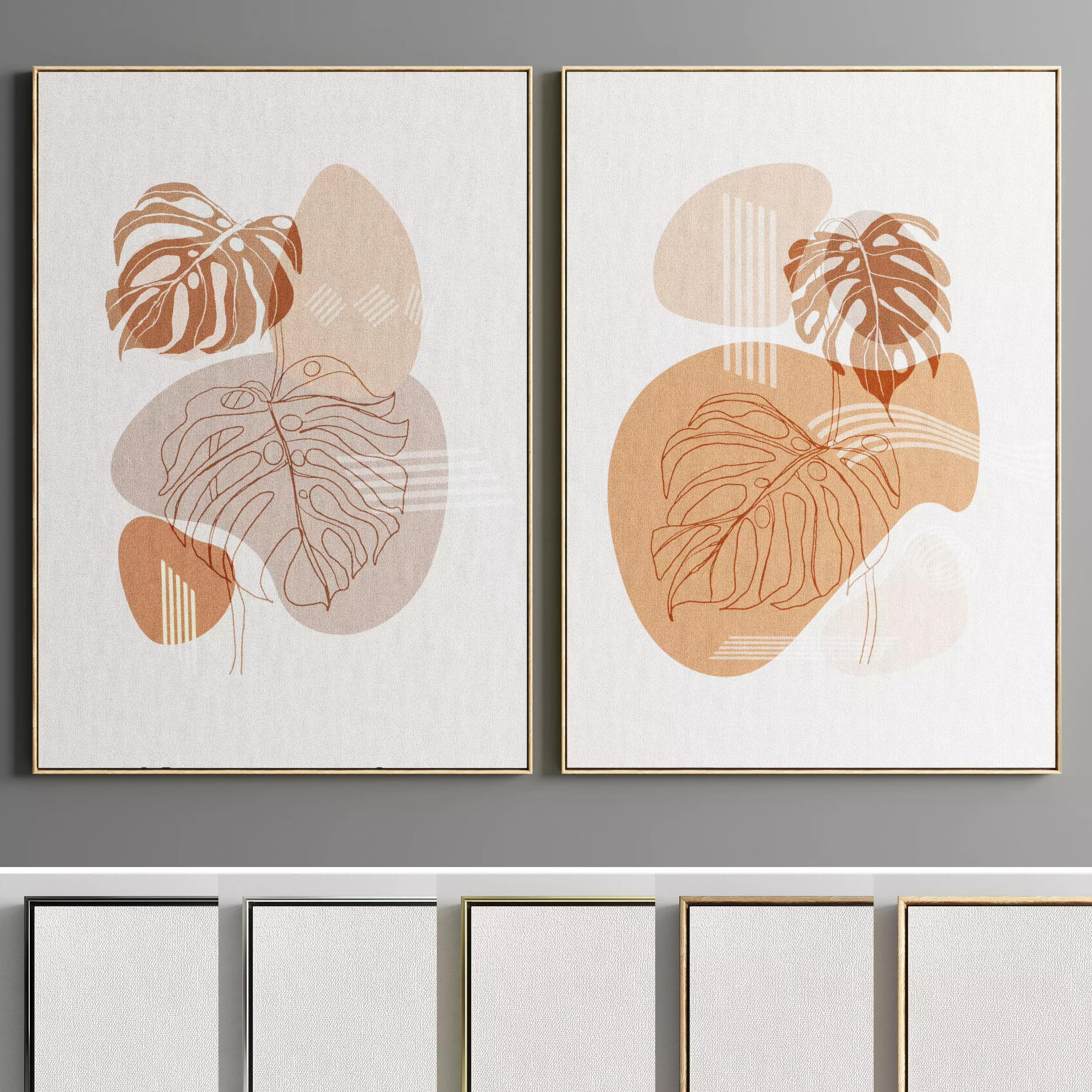 Set of paintings in frames for interior