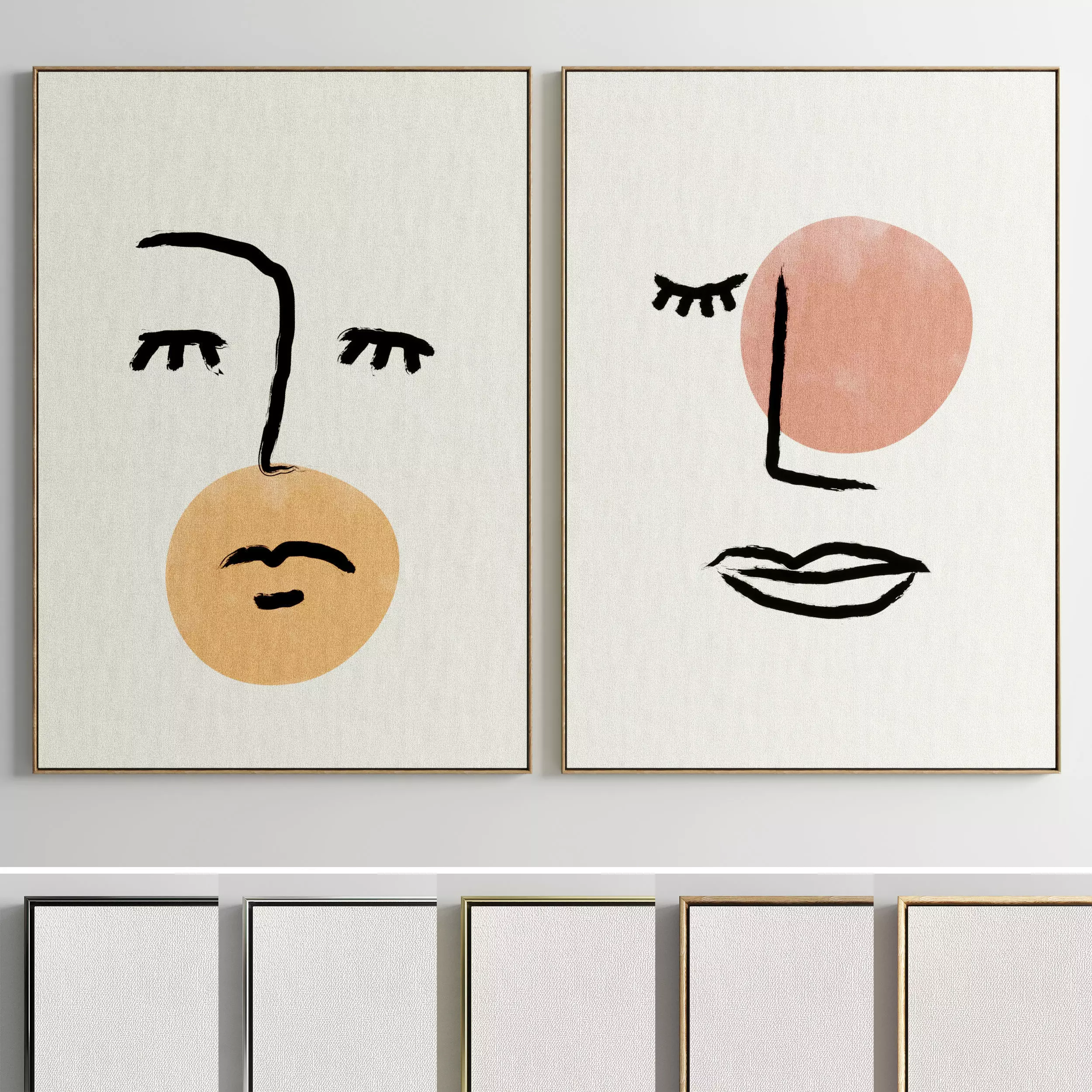 Set of paintings in frames for interior