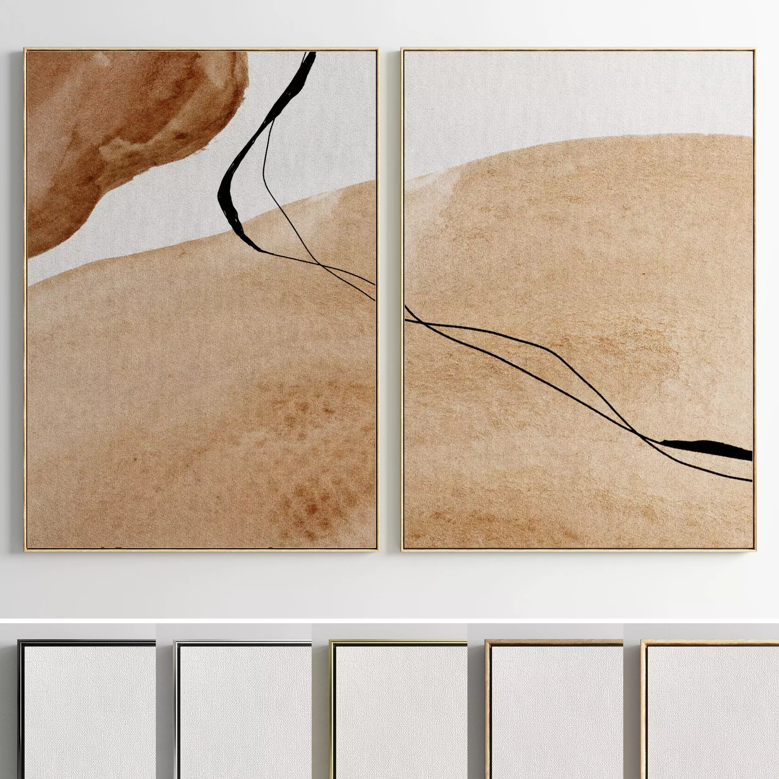Set of paintings in frames for interior