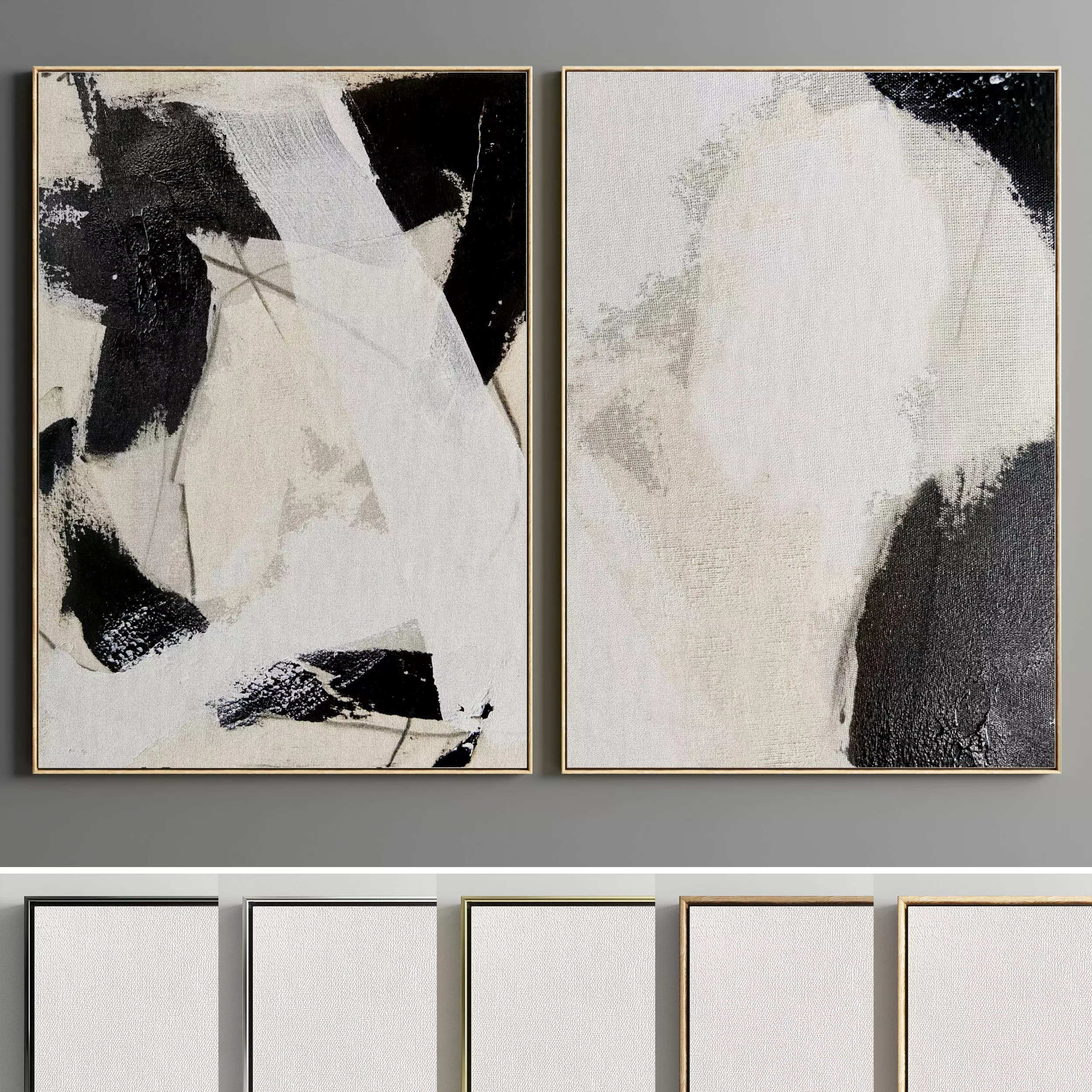 Set of paintings in frames for interior