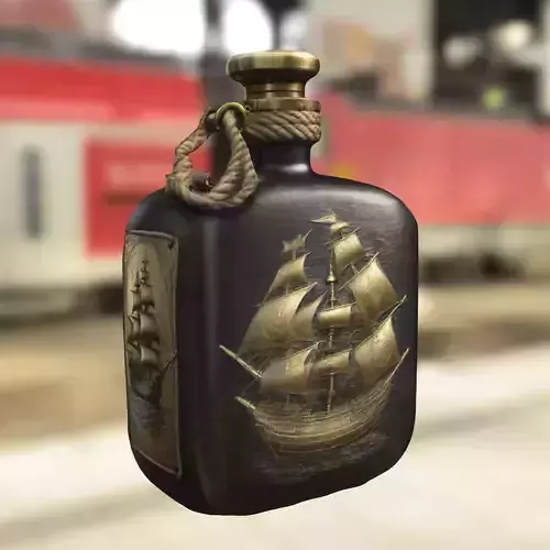 Highly detailed 3D model of a pirate-style flask featuring a carved sailing ship emblem framed in aged brass with rope detail on the neck. Perfect for use as a collectible item, prop, or decorative object in pirate, fantasy, and adventure-themed games such as Sea of Thieves, Assassin’s Creed IV: Black Flag, Skyrim, Roblox, Fortnite Creative, VRChat, Unity, and Unreal Engine. Available in multiple formats (OBJ, FBX, STL, DAE, PLY, GLB, Blender), this model is optimized for digital environments and also prepared for 3D printing, making it suitable as a physical collectible, cosplay prop, or decorative item.
