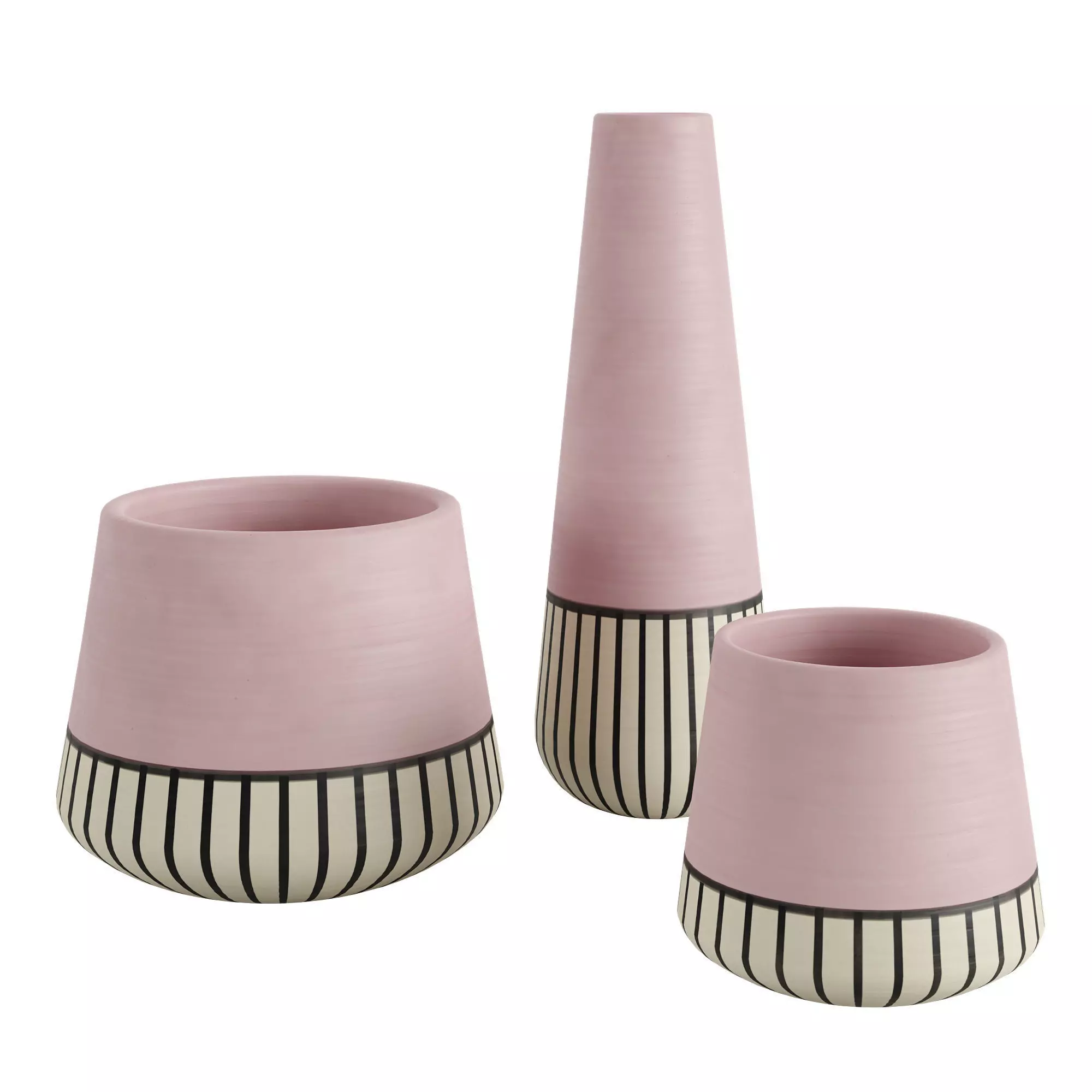 • Pixie Vase by Accent Decor are hand-polished. The matte pink glaze contrasts with the natural broth and the black lines at the bottom, creating a modern, feminine beauty