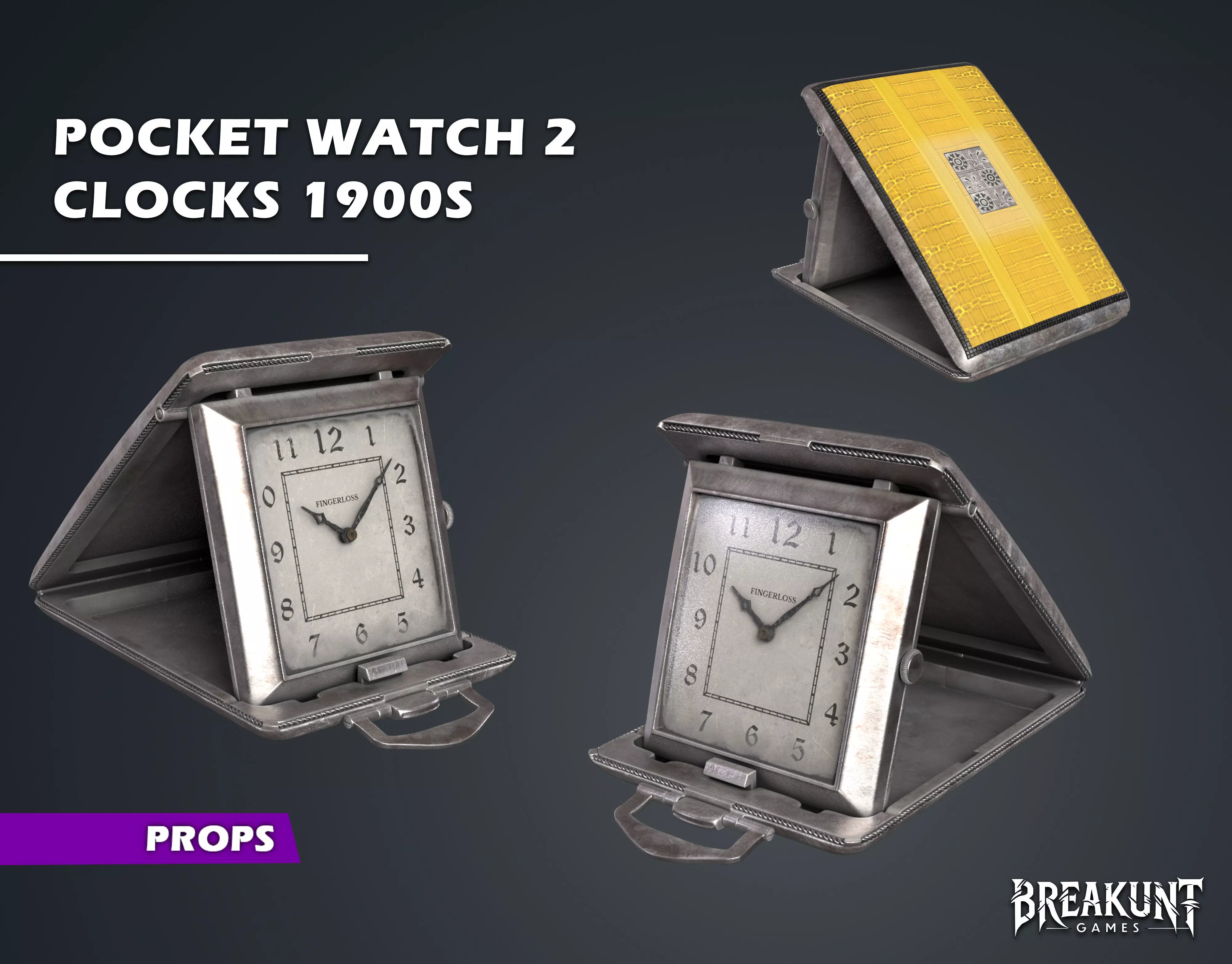 Bring authentic early-20th-century atmosphere to your scenes with this highly detailed set of twocompact folding travel clocks, inspired by classic 1900s bedside and carry-case designs. Each modelfeatures crisp metal bevels, subtle wear, readable dial details, and a protective case silhouette thatlooks great in close-ups.Ideal for: period interiors, detective investigations, abandoned hotels, Victorian / Edwardian sets,cinematic rendering, and any project needing a believable timekeeping prop.