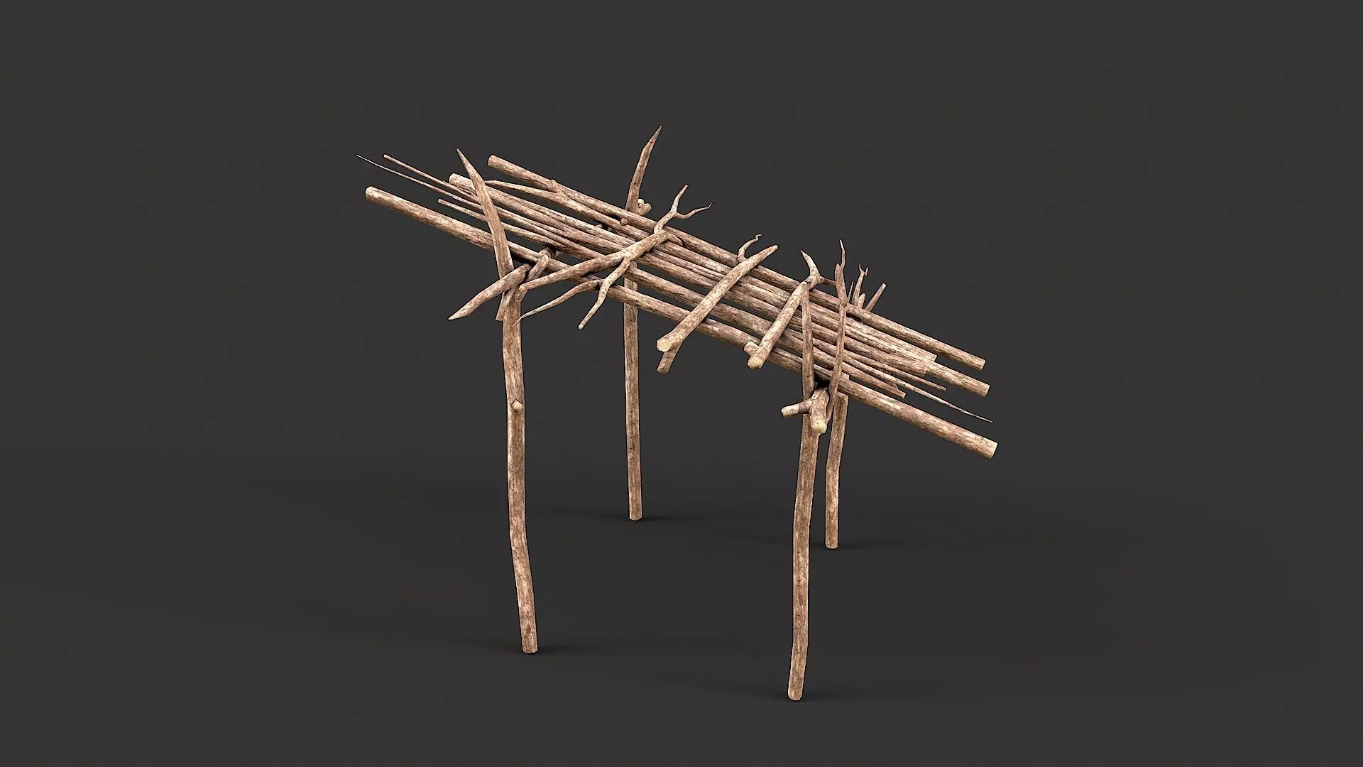 Primitive Wood Stick Jungle Shelter 14 Low-poly 3D model