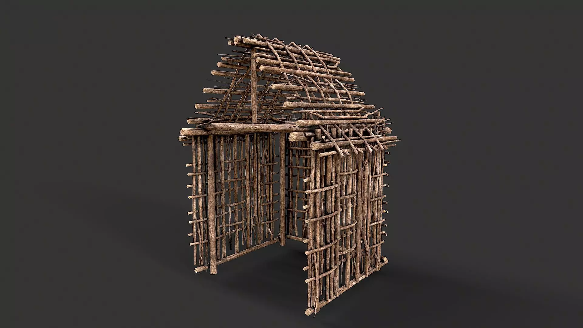 Primitive Wood Stick Jungle Shelter 2 Low-poly 3D model