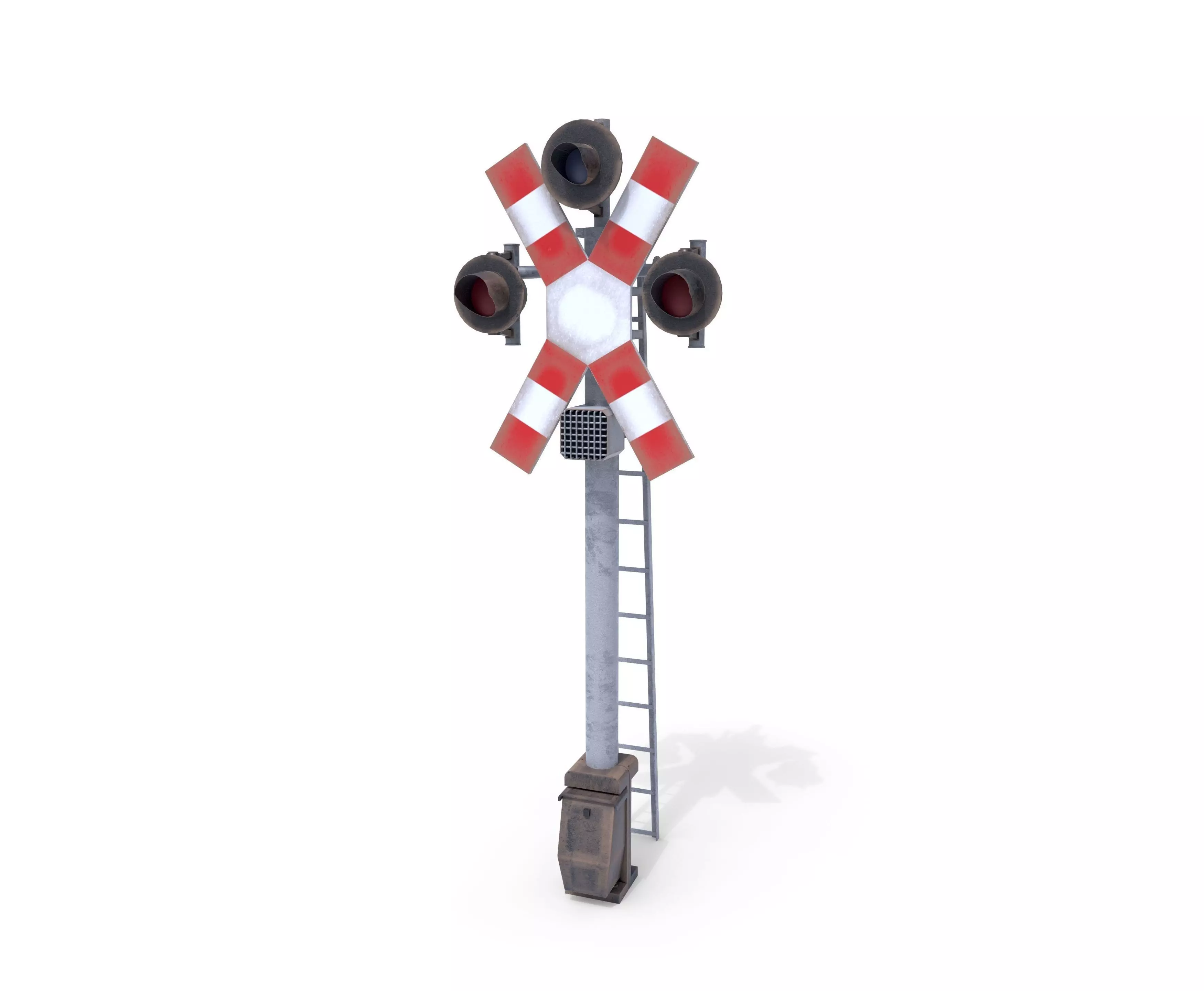 Railway crossing traffic light 3d model built in Blender and rendered with Cycles, with PBR materials, Game-Ready.