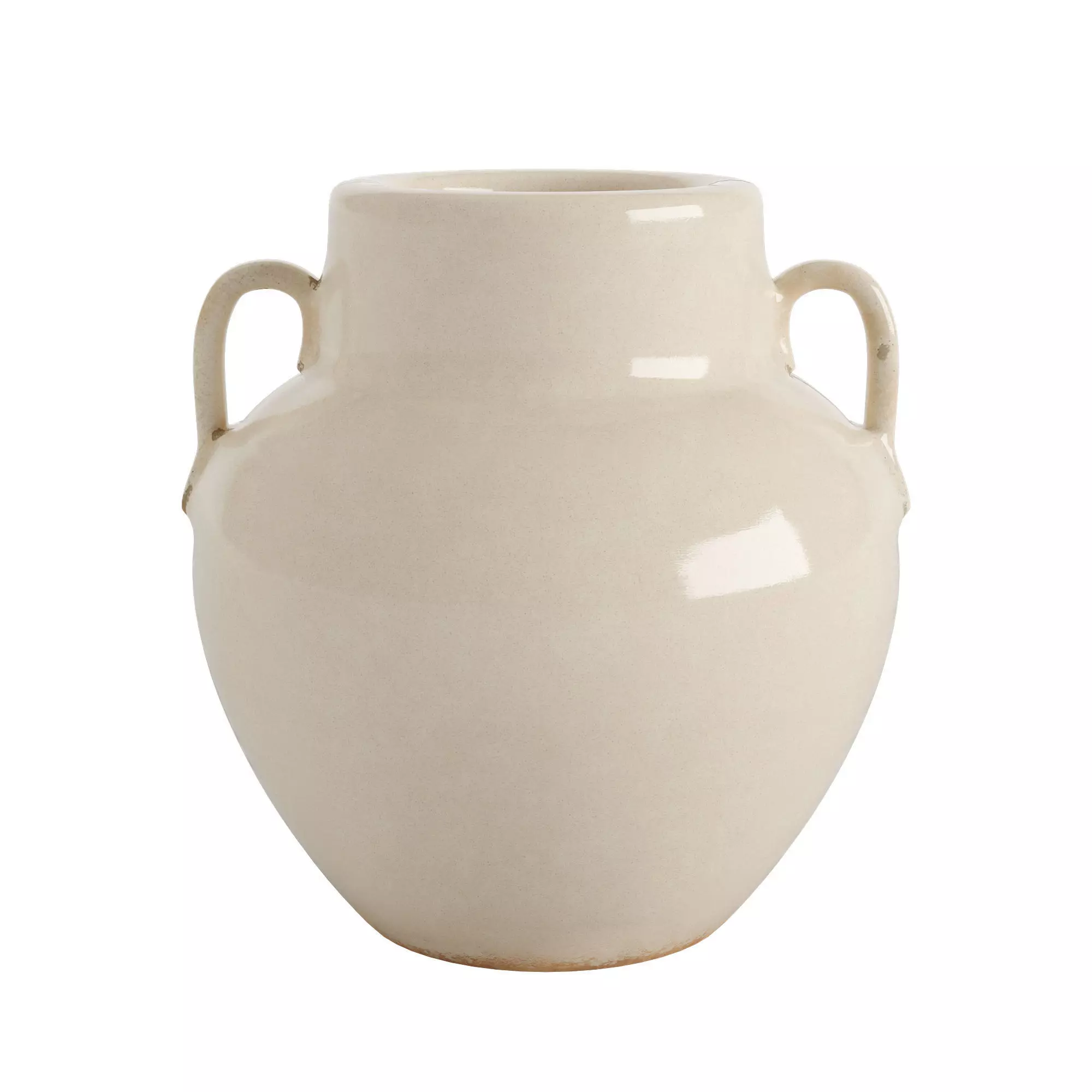 • Unassuming and elegant, the Rasley Handled Jar has a subdued presence that elevates vignettes with delicate detail. Made from porcelain with a creamy white glaze, this piece will complement your built-in or console styling.