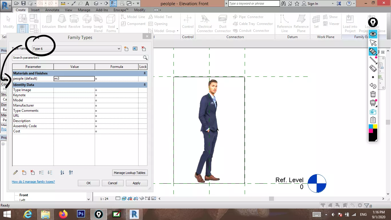 The model has material settings that define how surfaces look (color, shine, transparency, etc.).