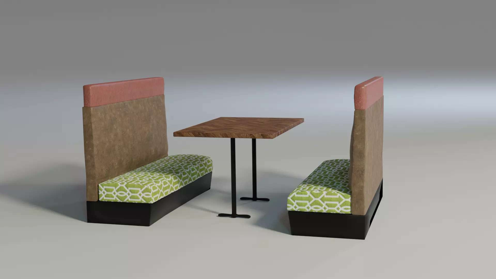 Present day family restaurant-style restaurant booth & table. Textures include diffuse, specular, normal, bump, ao, and displacement. Perfect for an interior scene. Model orignally created in Blender 2.8 Beta.